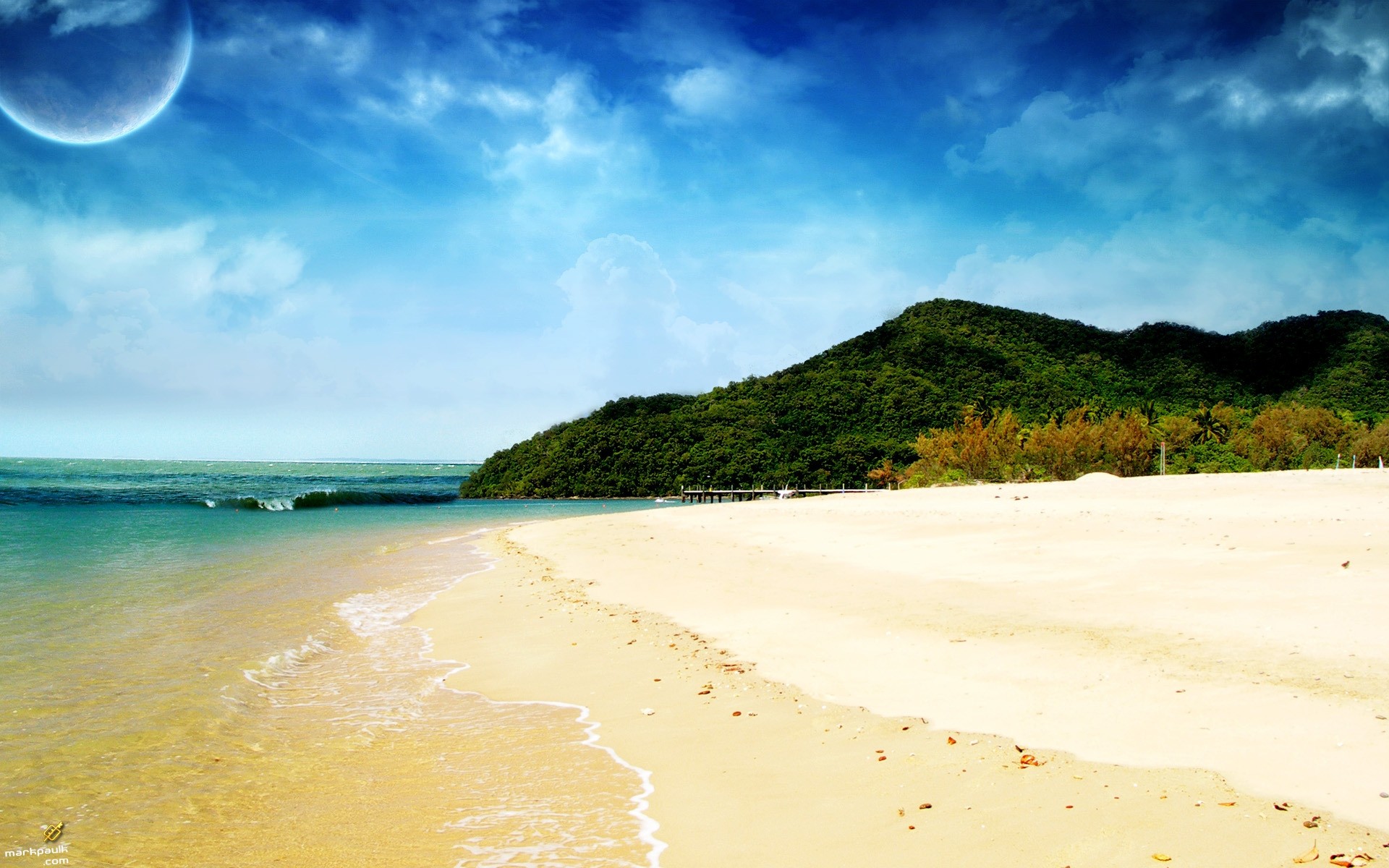 La costa desierta, no la playa, el mar es espacioso, el océano juega suavemente con su ola