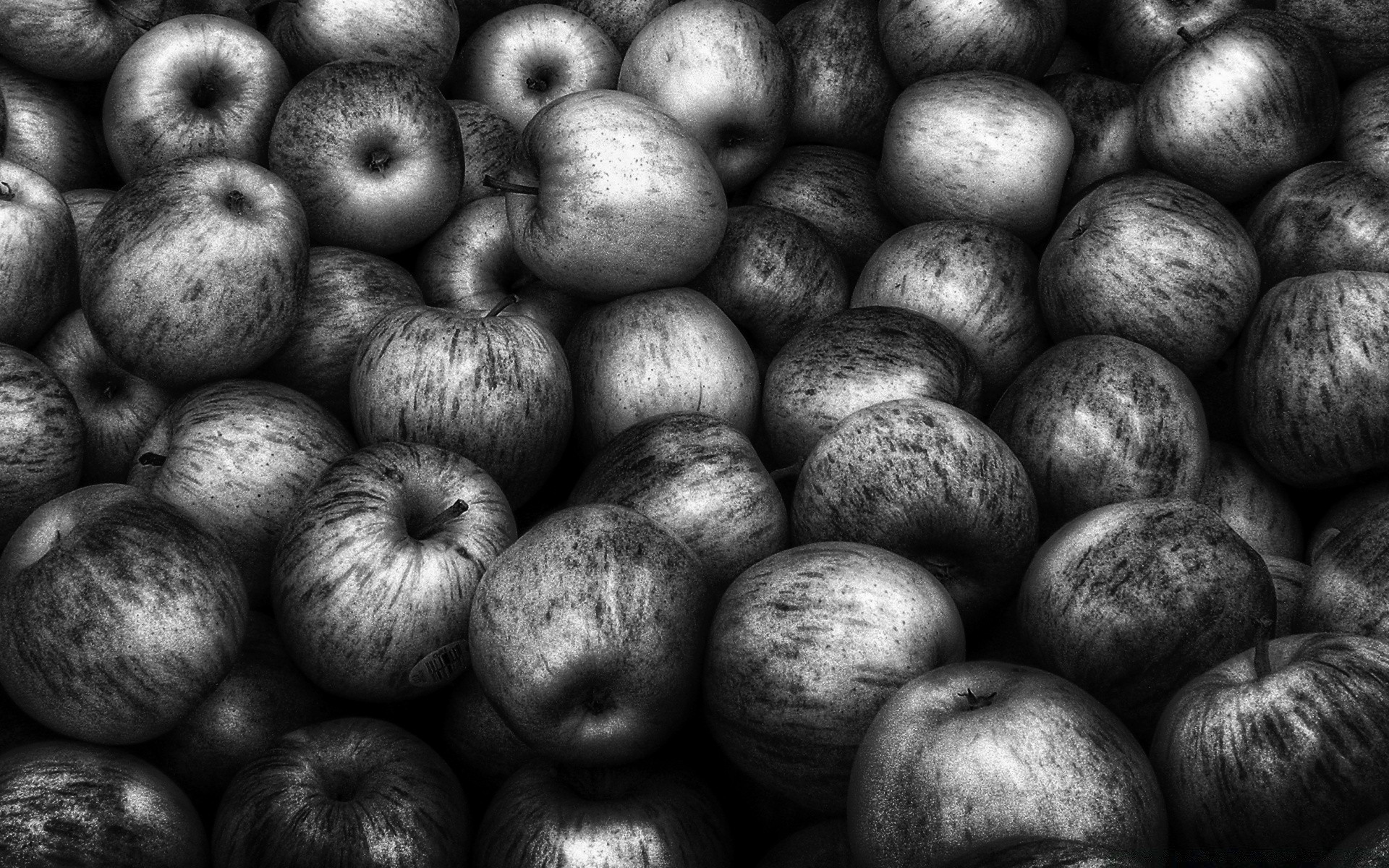 Naturaleza muerta, tristeza en el verano. Trazo dibujado cosecha de manzanas