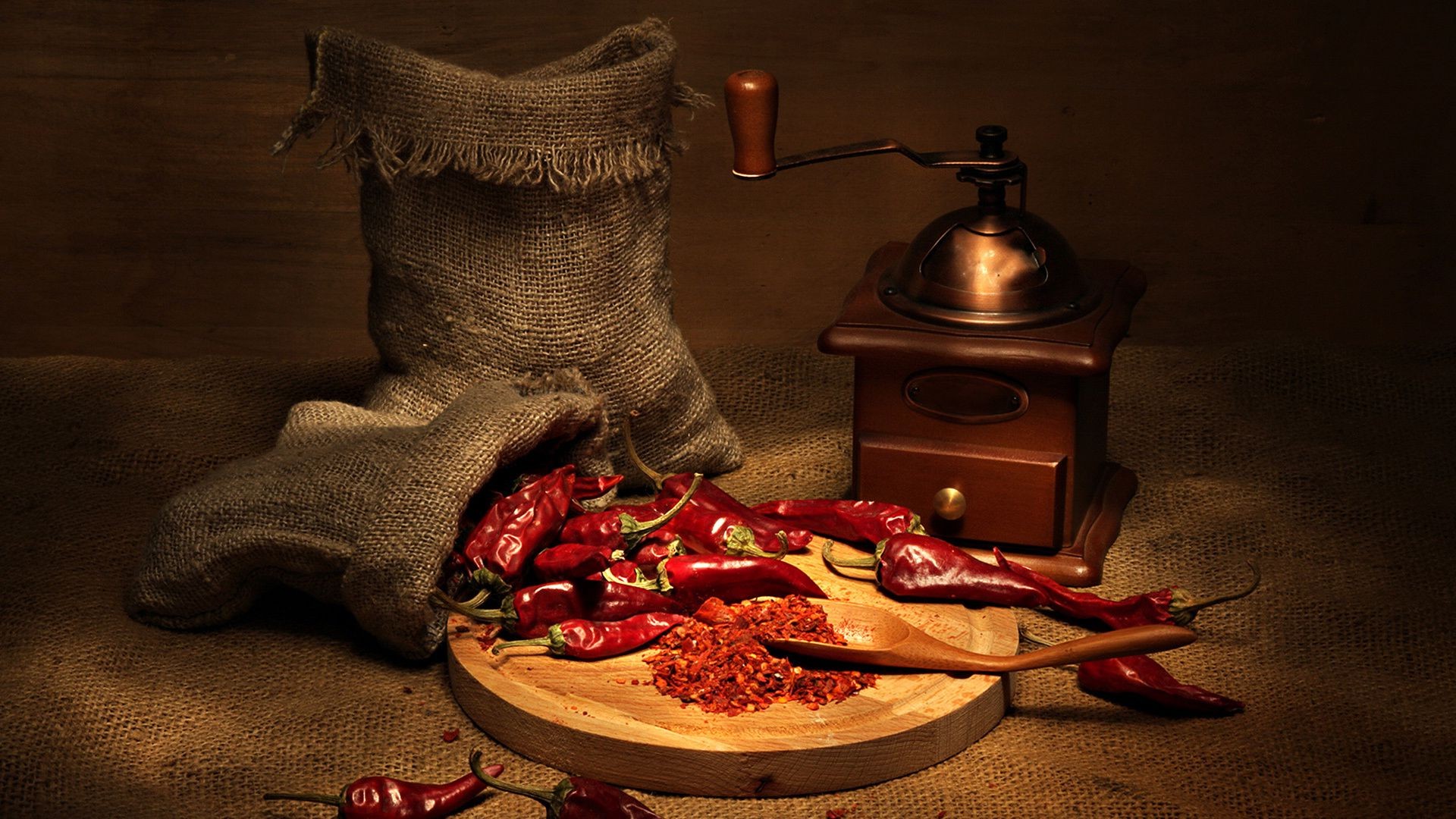 Pimiento rojo y molinillo de café