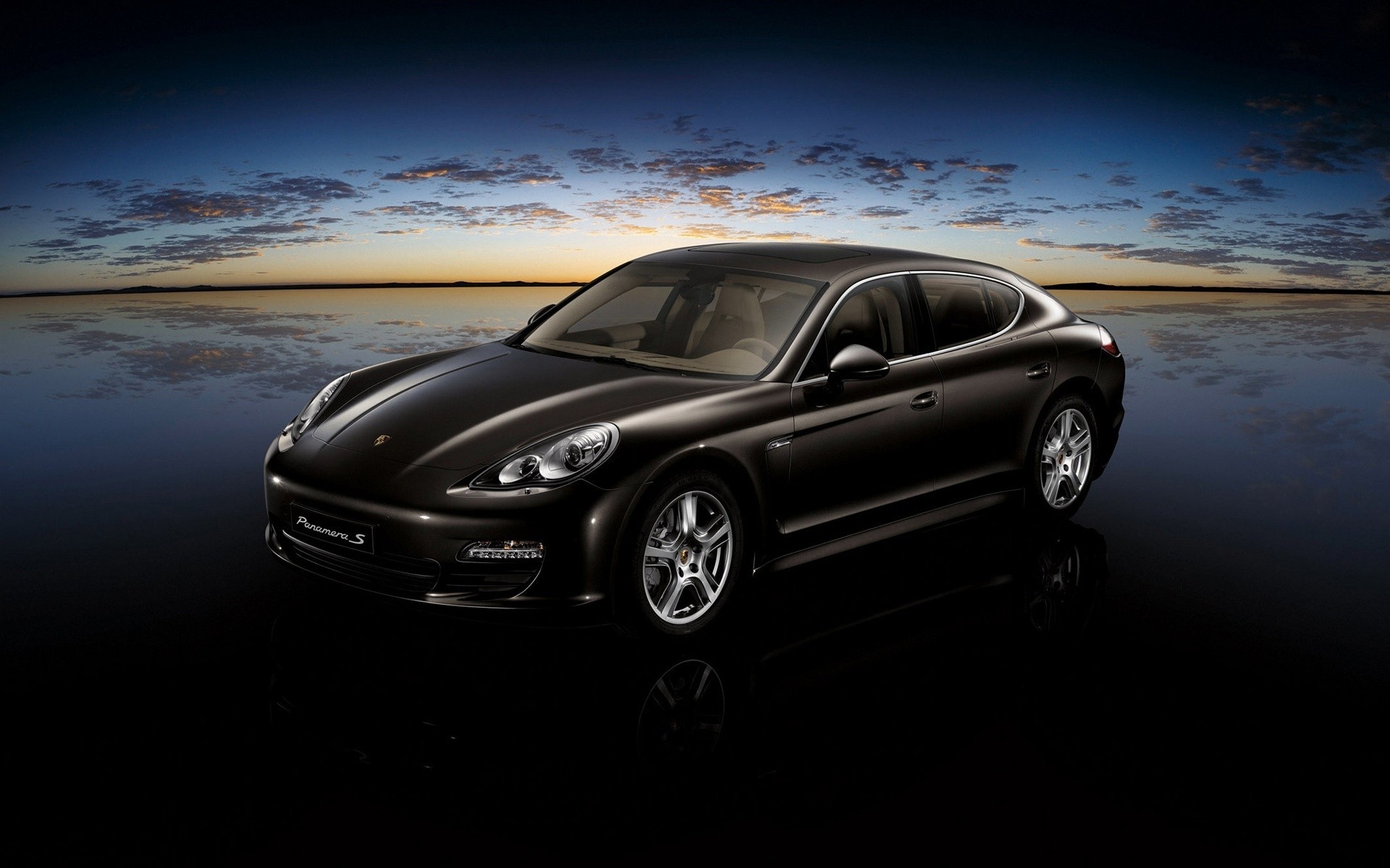 Porsche negro en el fondo del amanecer