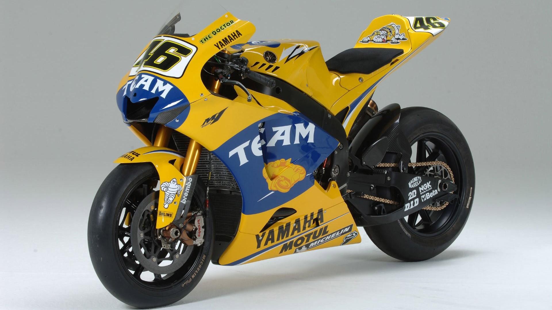 Motocicleta Yamaha amarilla de pie en el Suelo