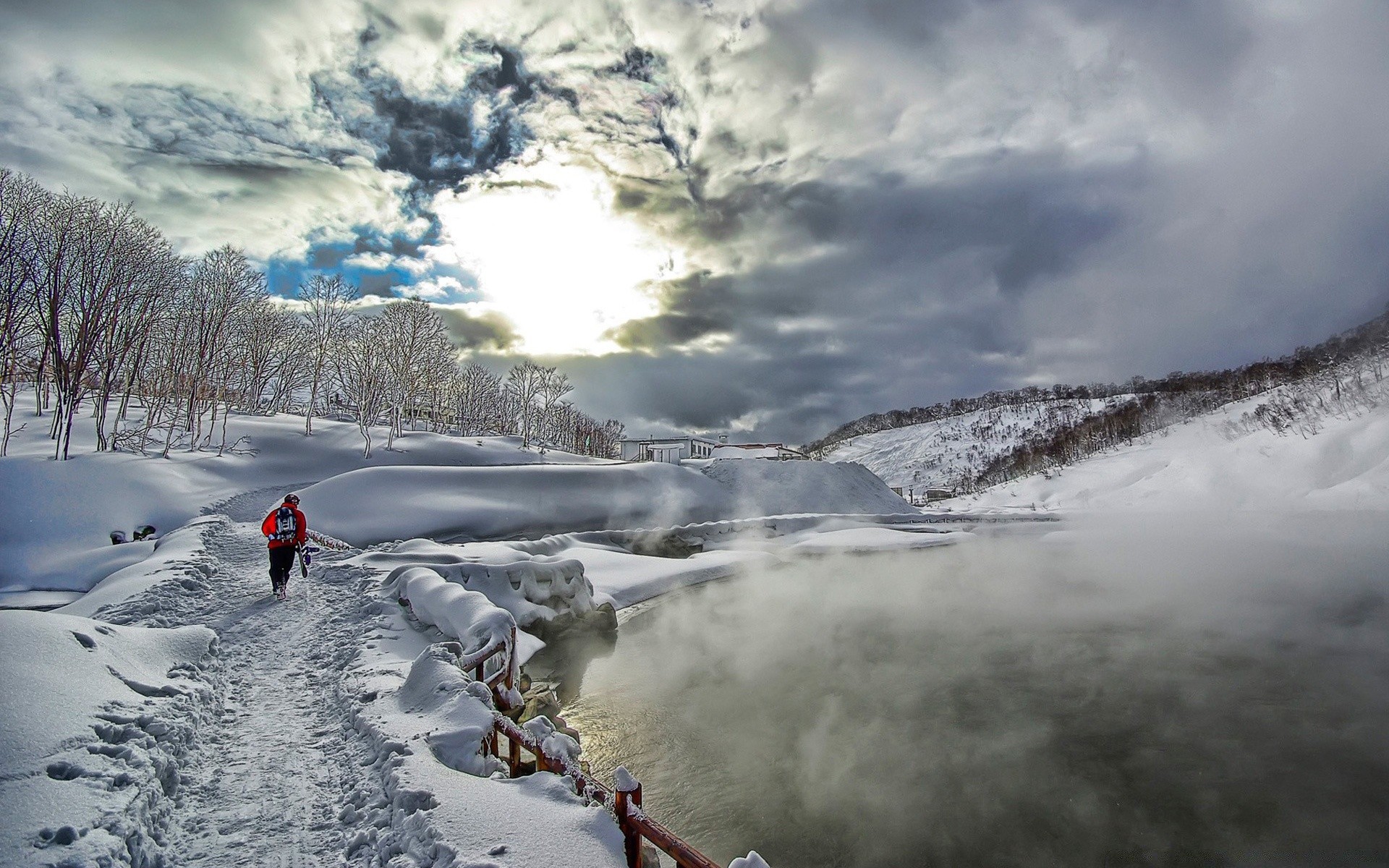 Los rayos del sol entre los árboles oscuros en el bosque de invierno