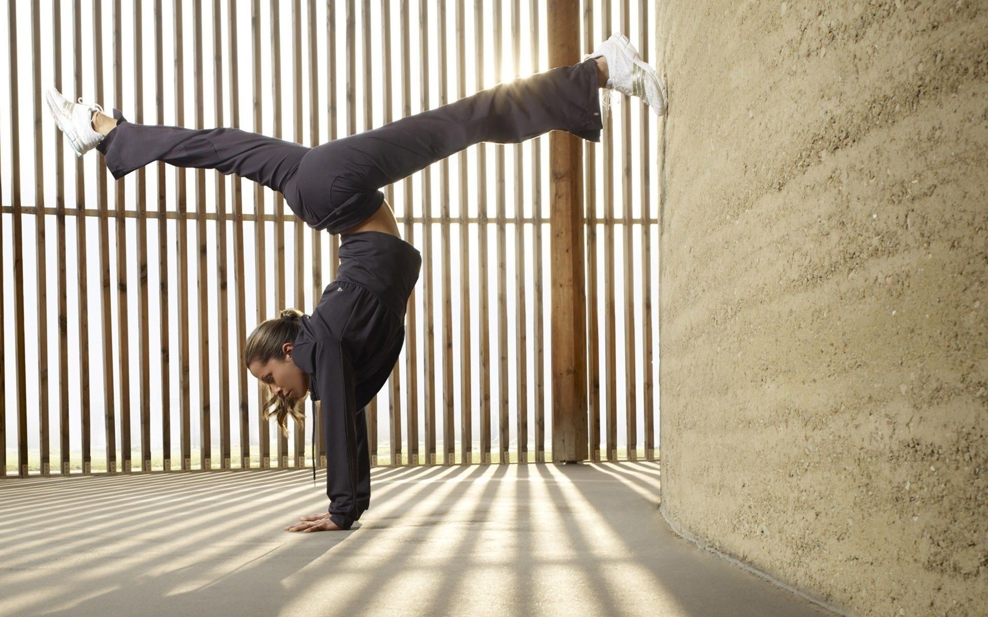 Parkour. Niña realiza volteretas laterales con obstáculos