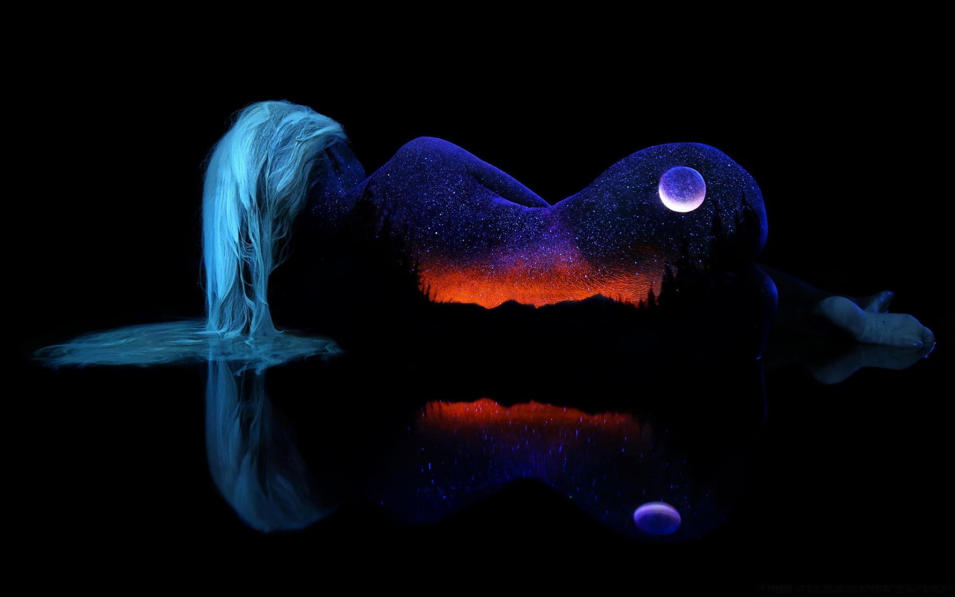 Retrato procesado de una hermosa niña sobre un fondo azul