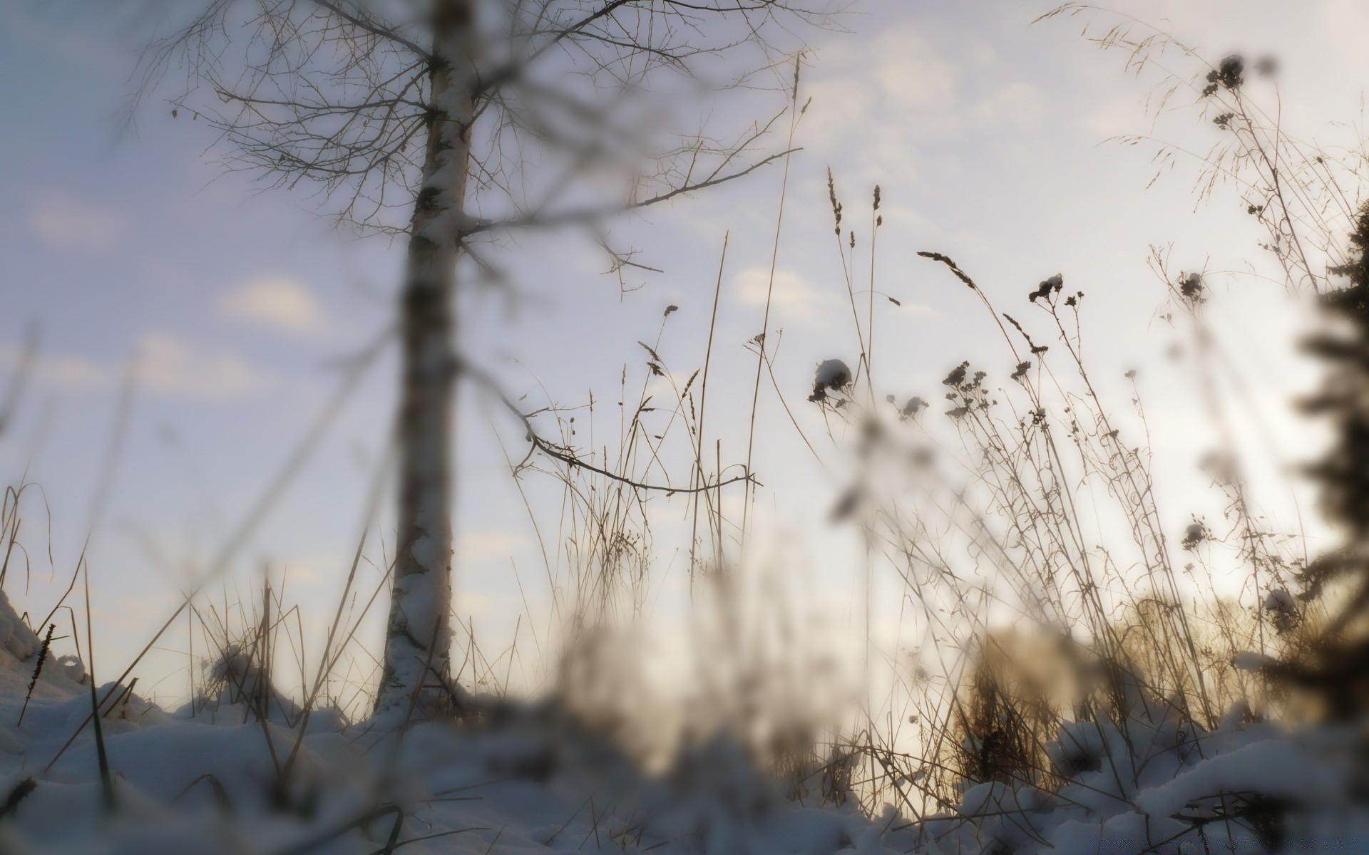 La hierba y el cuidado en invierno quitados de abajo