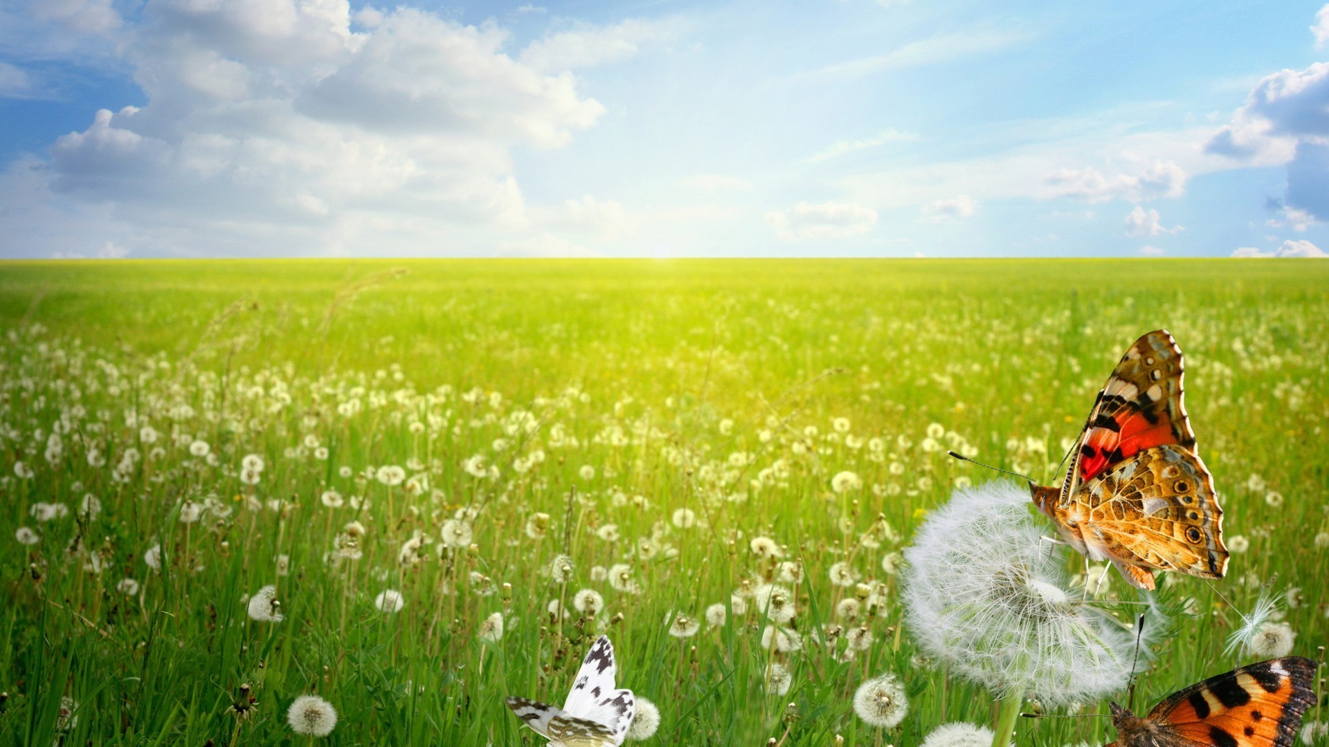 Un claro de dientes de León amarillos se encuentra con los primeros rayos del sol