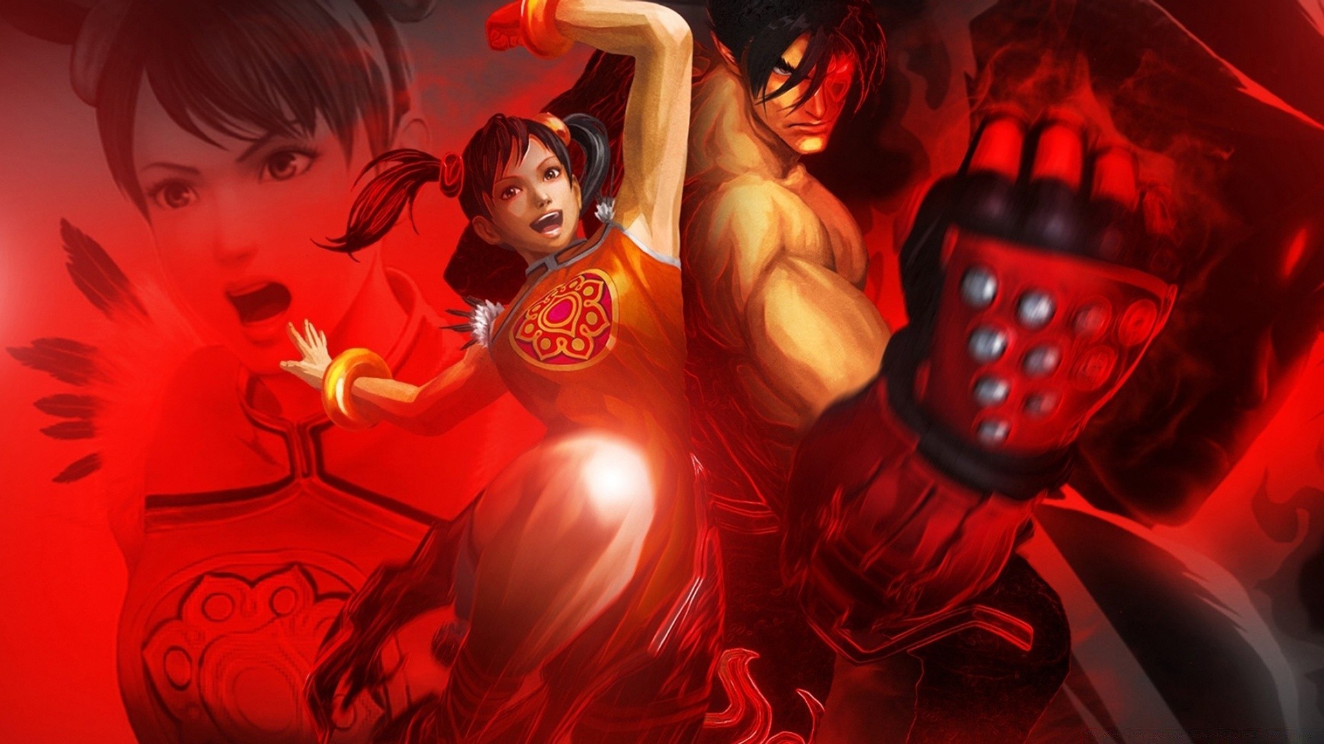 Dos personajes sobre fondo rojo