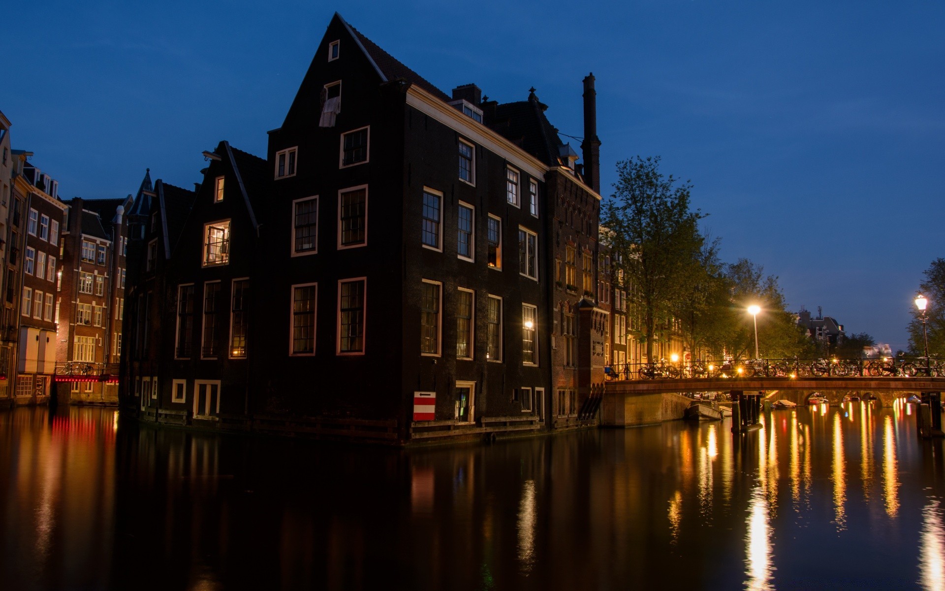 Linterna iluminada y la ciudad en el fondo de las aguas oscuras
