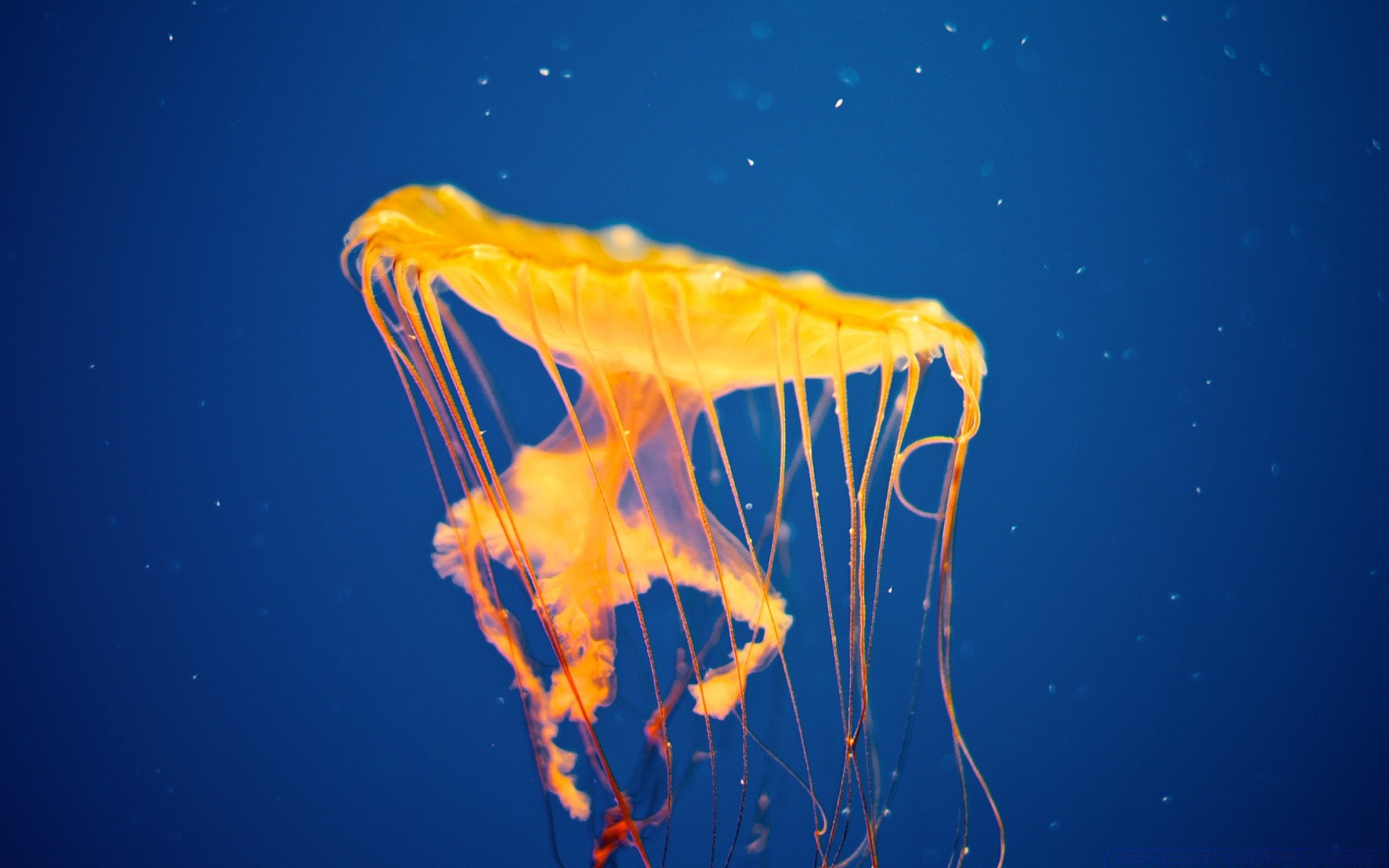 Medusa dorada en el mar azul