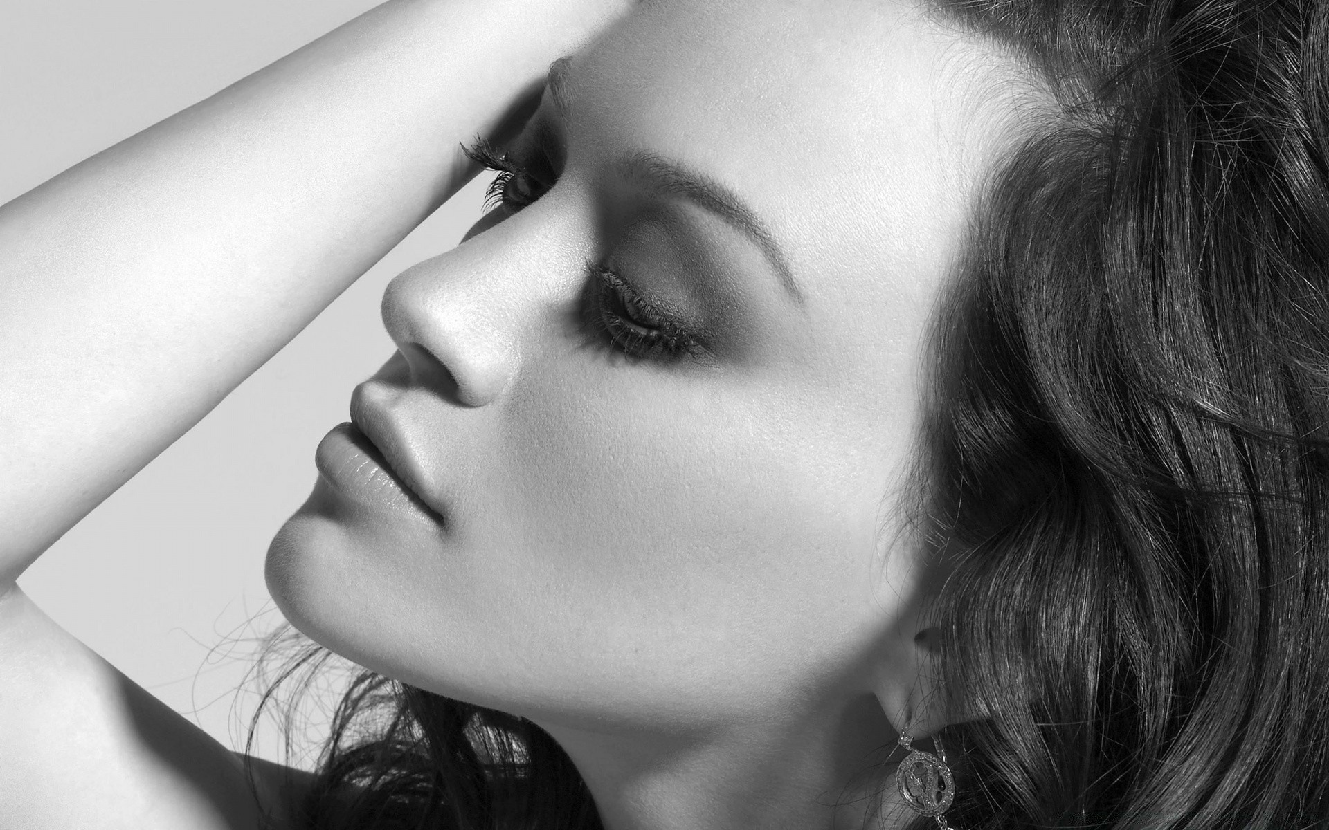 Foto en blanco y negro de una rubia con el pelo largoFoto en blanco y negro de una rubia con el pelo largo