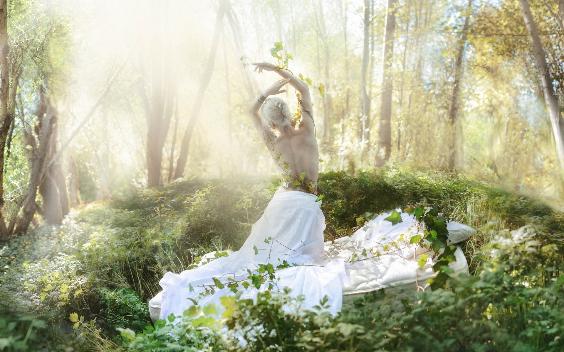 Jeep Grand Cherokee de pie en el bosque entre árboles gigantes