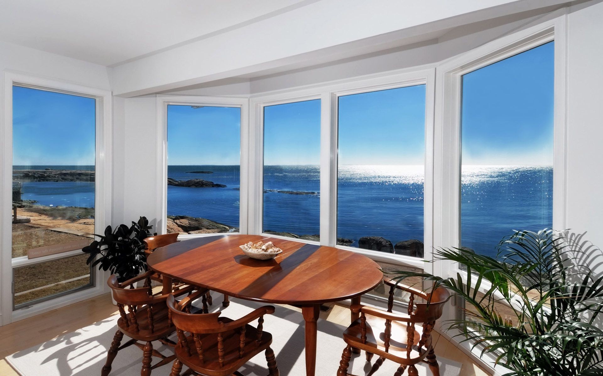 Mesa de comedor frente a la ventana en el ventanal