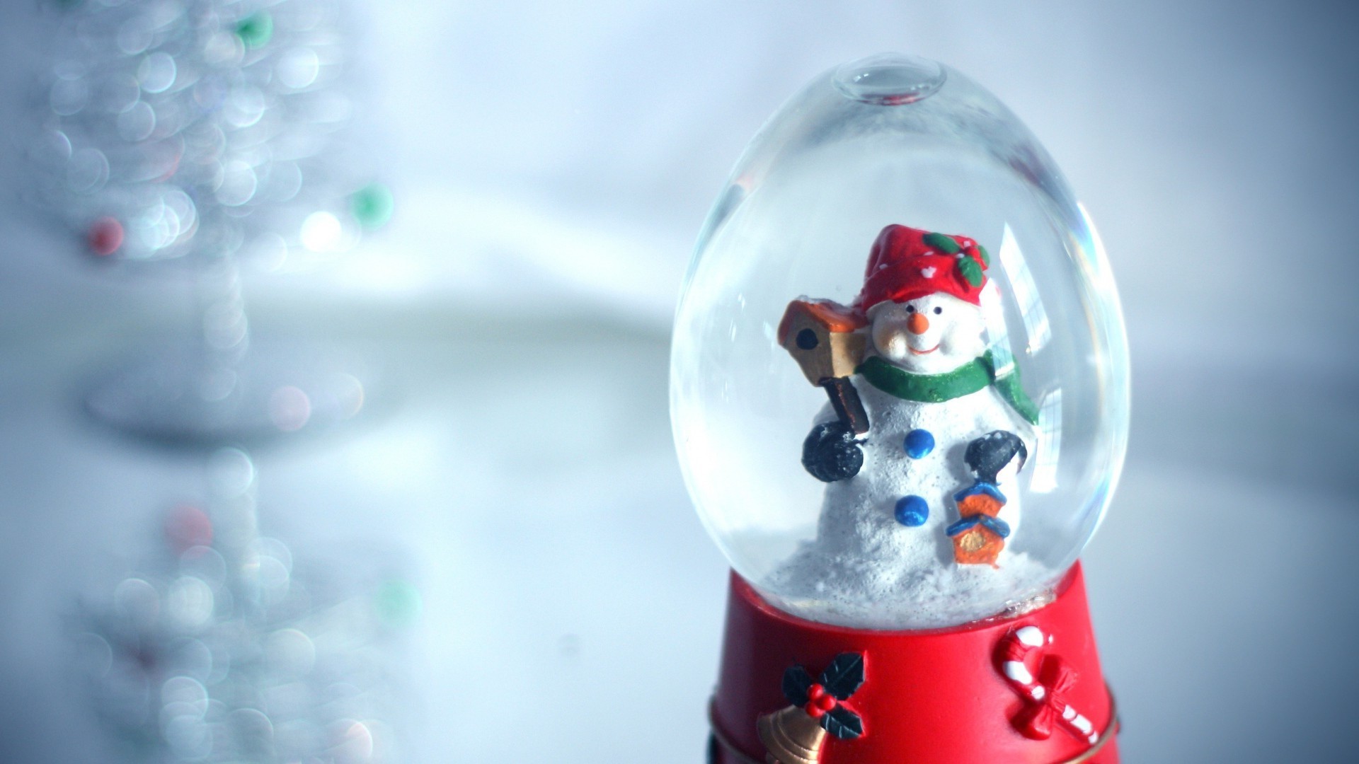 Recuerdo de año nuevo-bola con muñecos de nieve en el interior