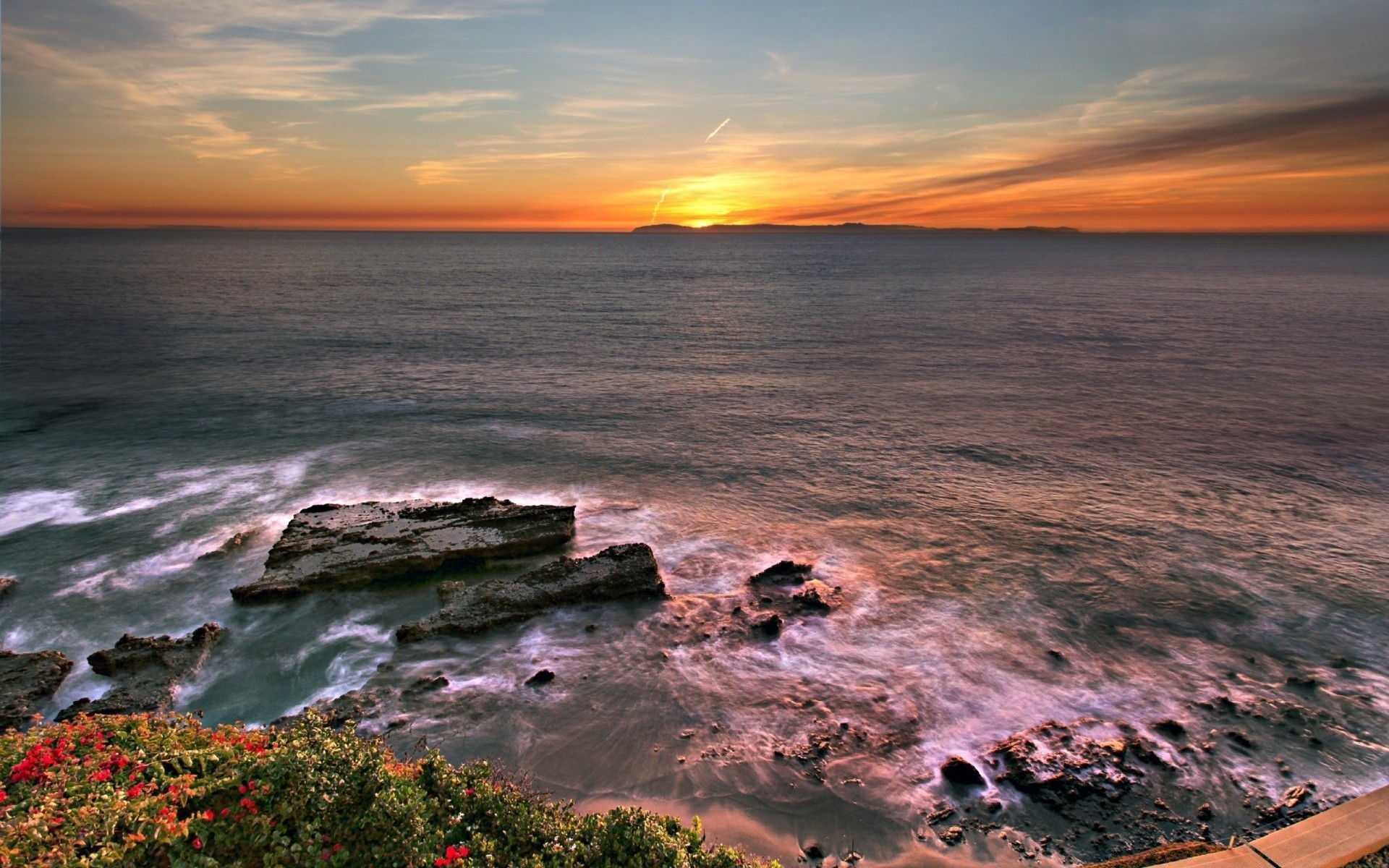 Puesta de sol de verano en la playa salvaje