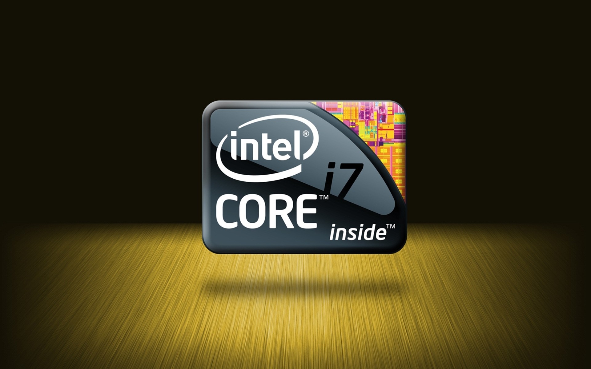 El emblema de Intel core en el aire sobre un fondo oscuro con iluminación en la parte superior