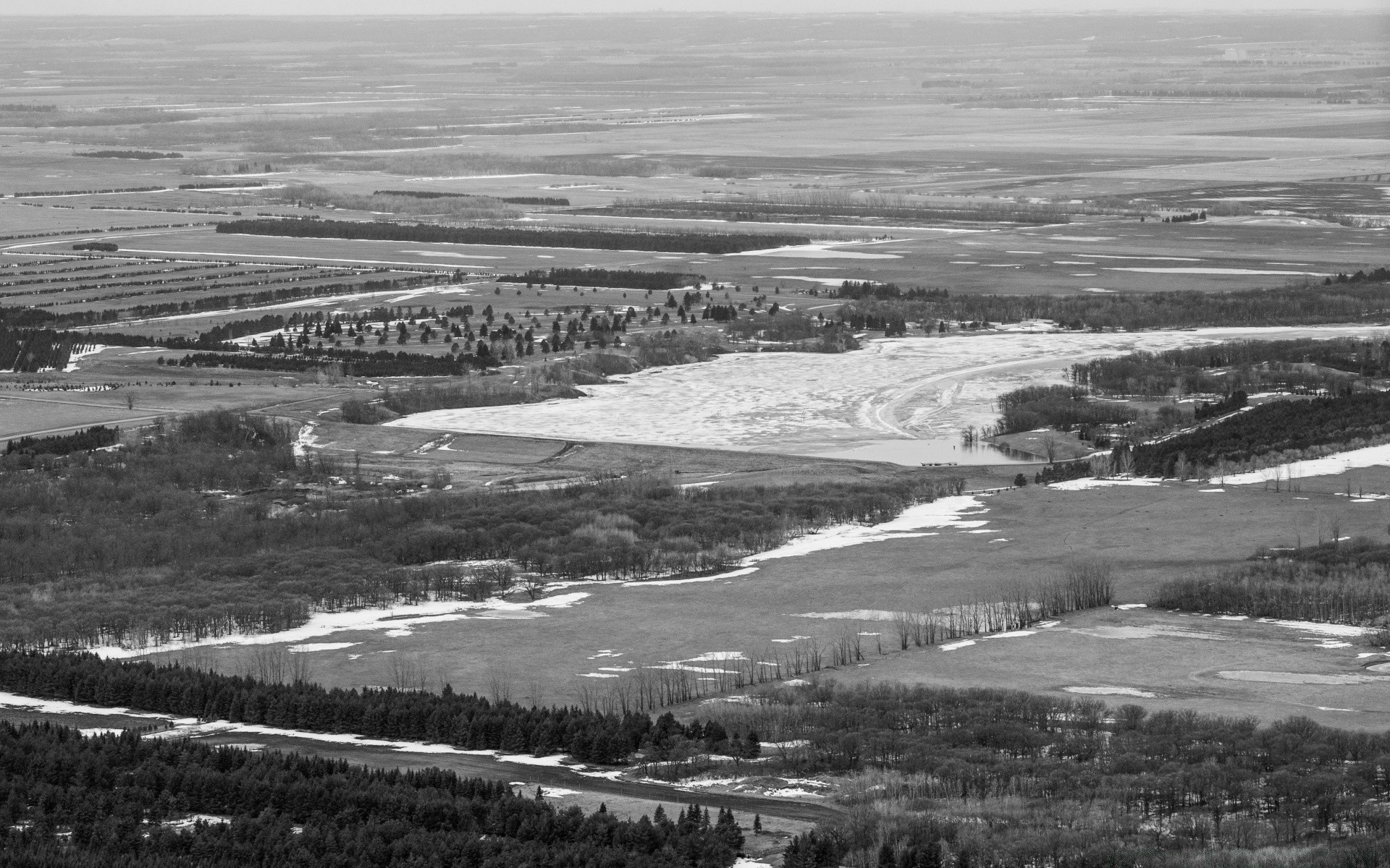 Foto en blanco y negro de la naturaleza con el bosque y el agua