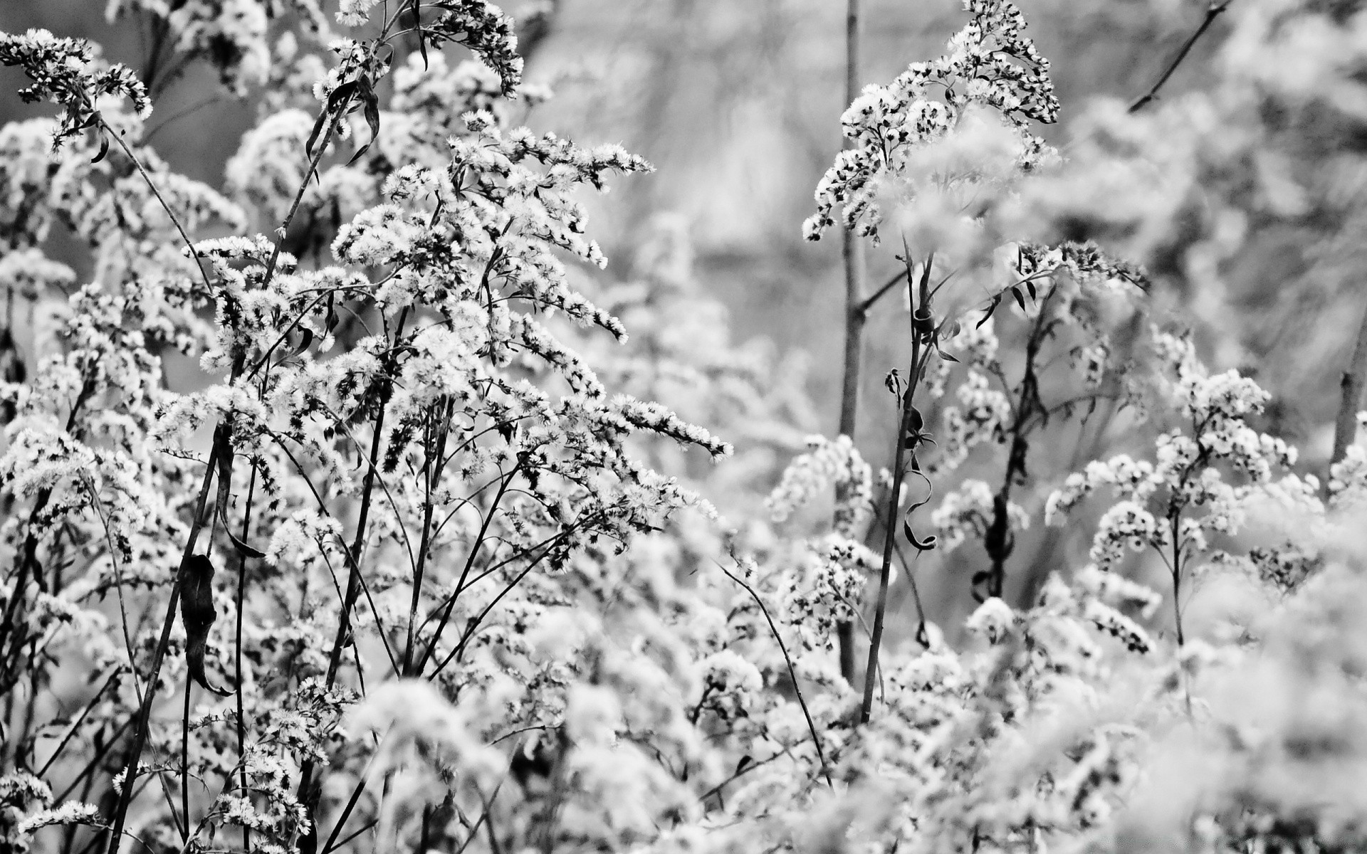 Flores blancas con un centro de color amarillo sobre un fondo negro