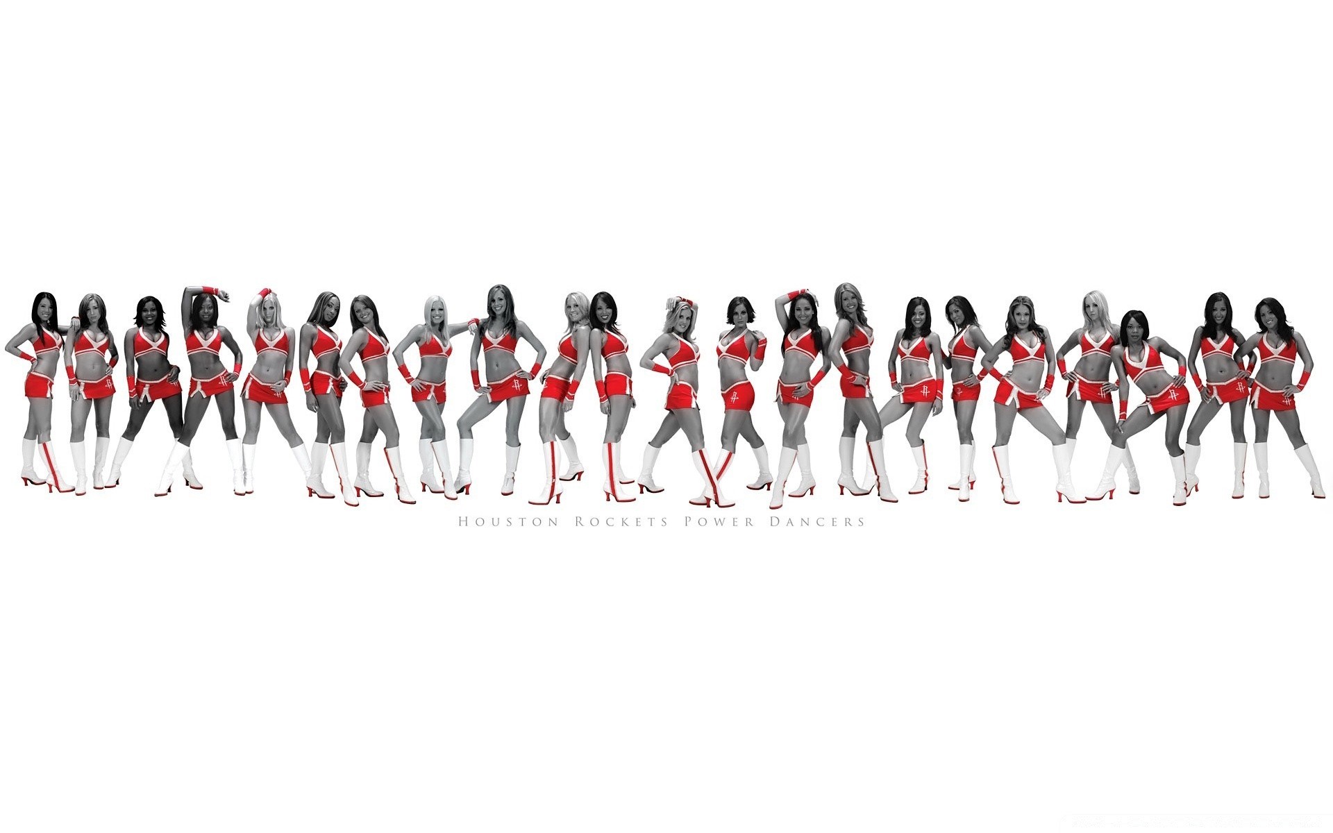 Multitud de chicas en trajes de baño rojos