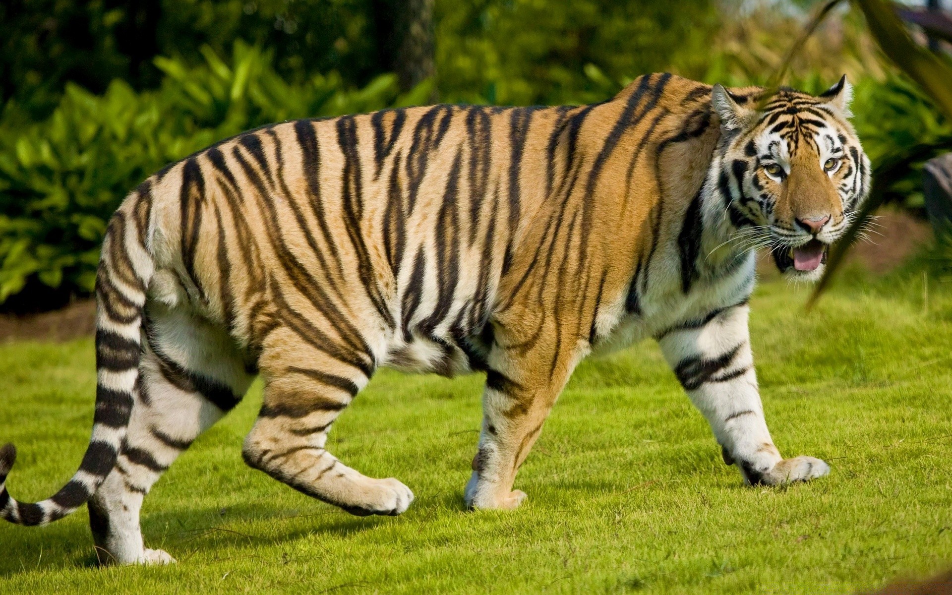 Enorme tigre en la hierba verde