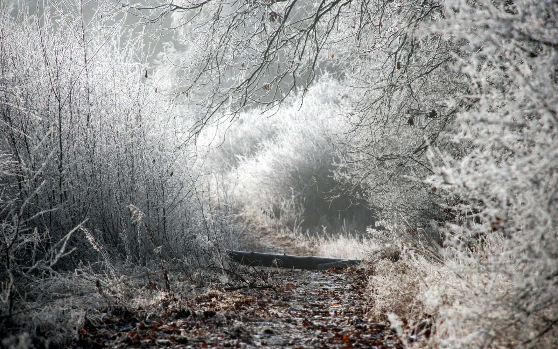 En las montañas, los abetos se cubrieron de escarcha y se pararon en la neblina