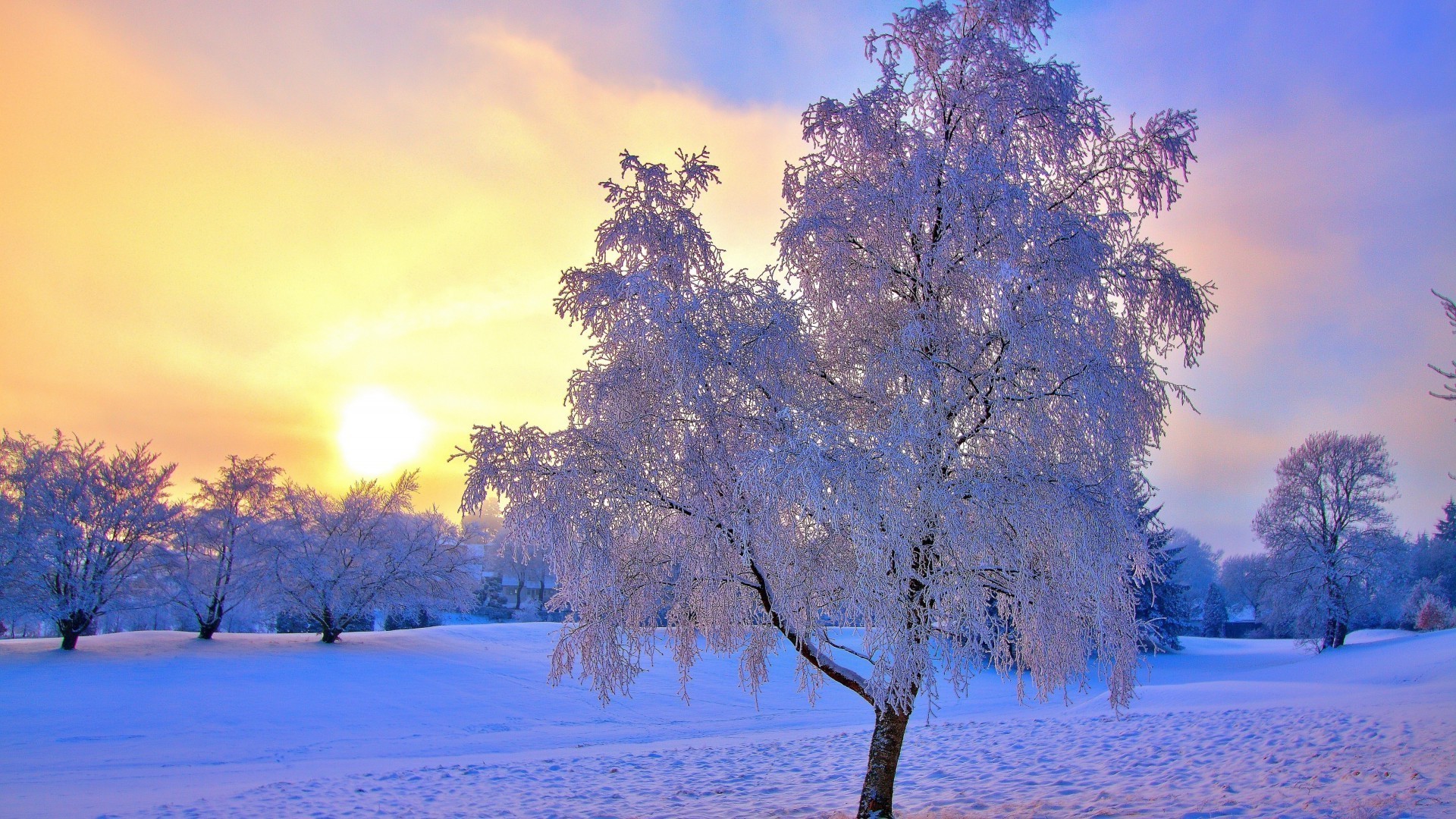 Paisaje frío y sol helado