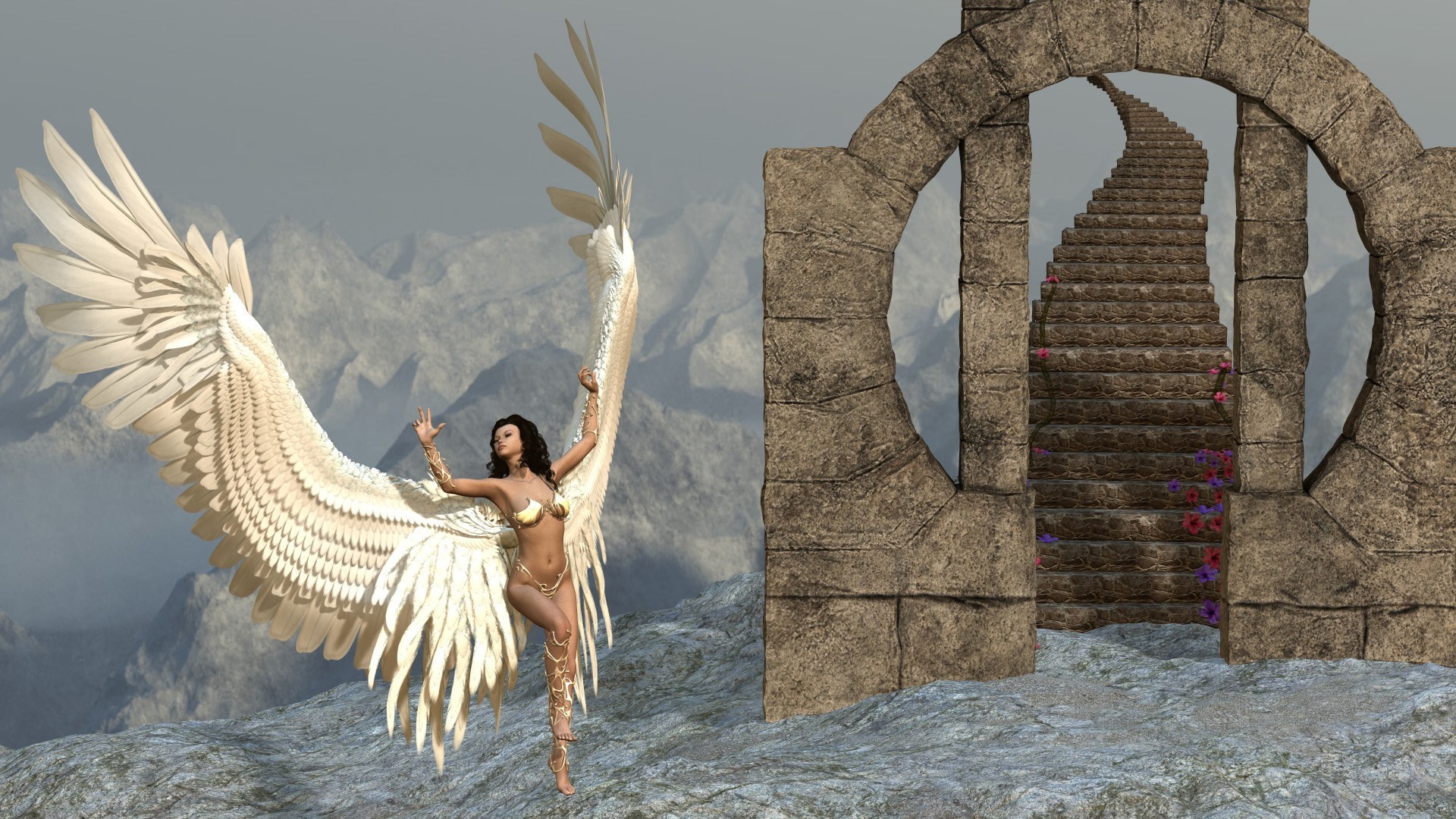 Dibujado a mano ángel mujer antes de entrar en el paraíso