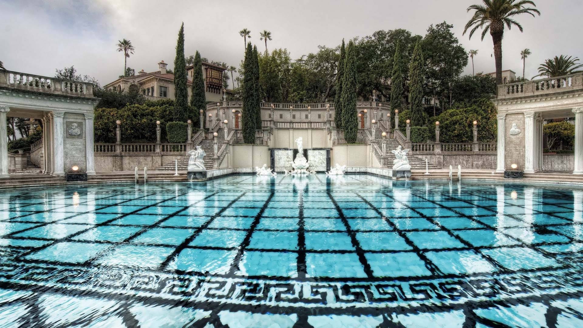 Rica piscina al lado de hermosas estructuras arquitectónicas