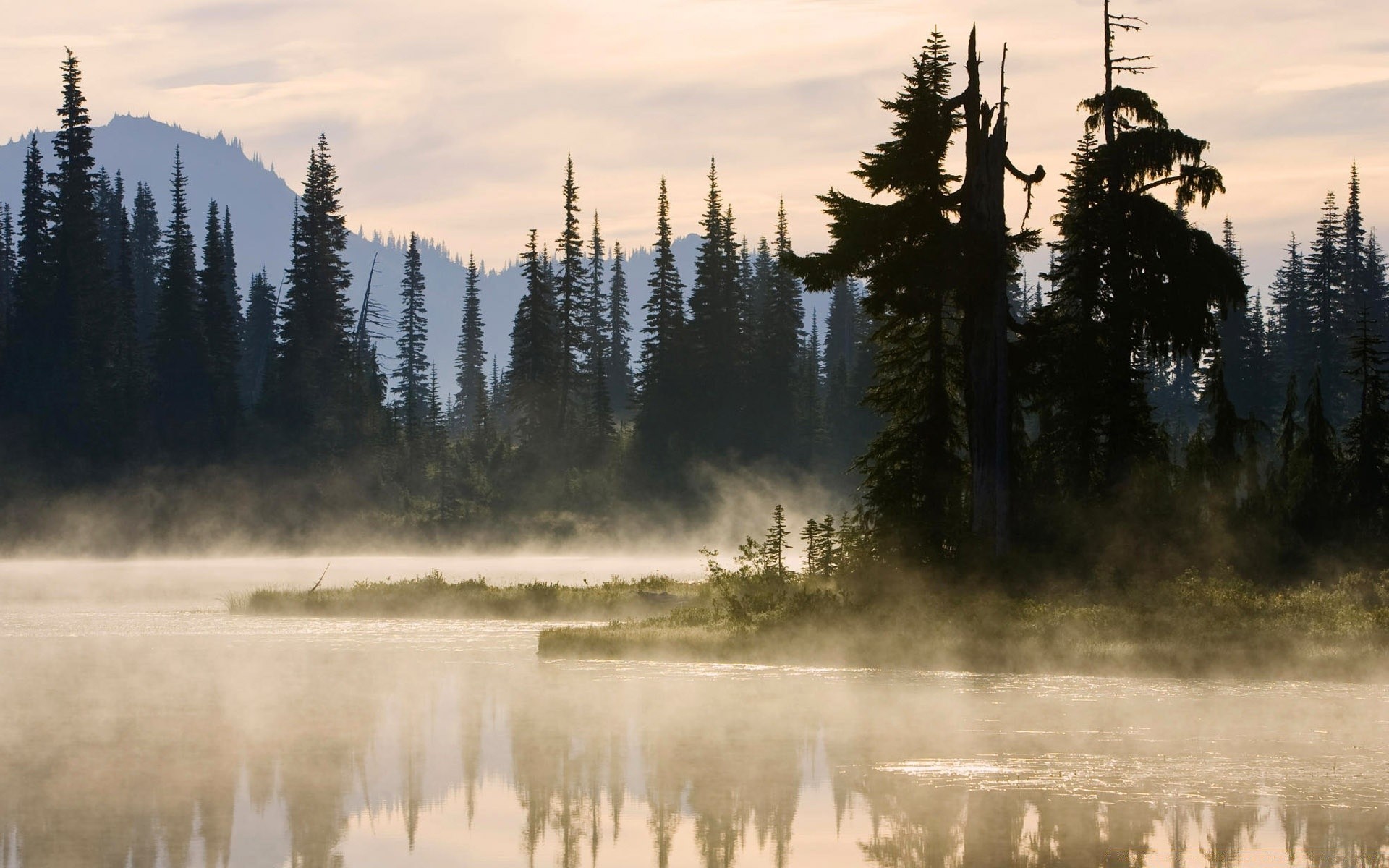 Paisaje natural con niebla en la superficie del aguaPaisaje natural con niebla en la superficie del agua