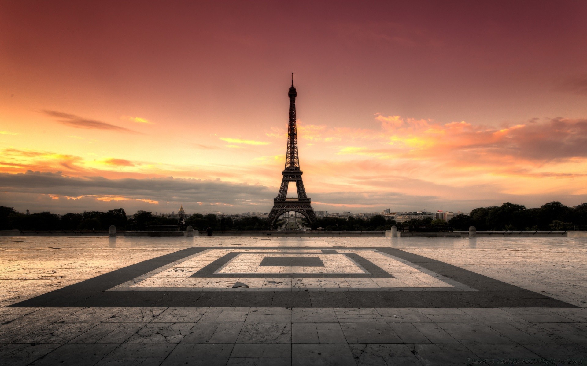 Puesta de sol en París en la torre Eiffel
