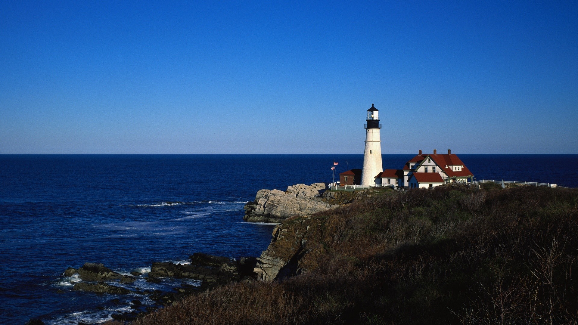 Resplandor de un faro lejos del mar