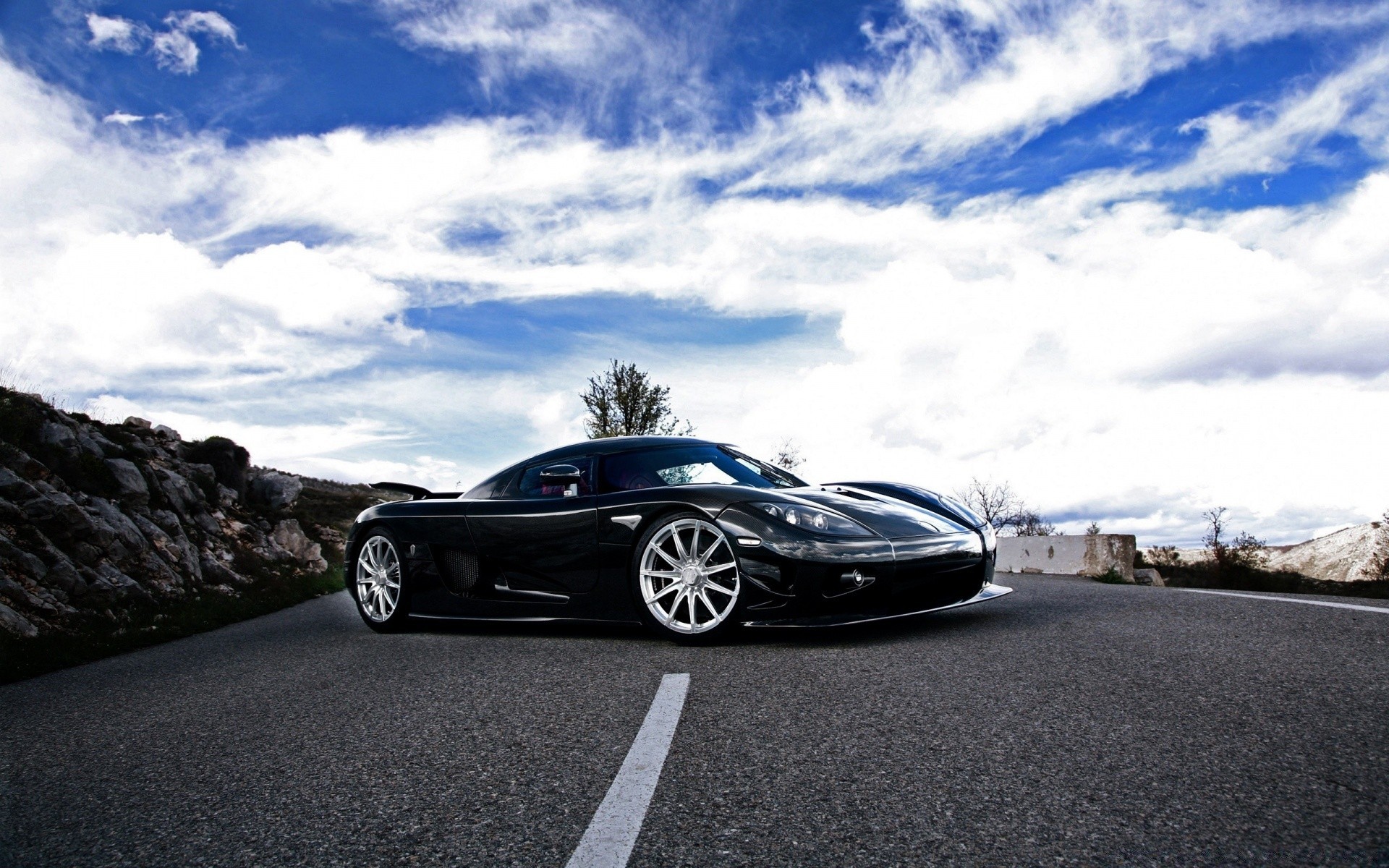 Elegante coche negro y cielo expresivo