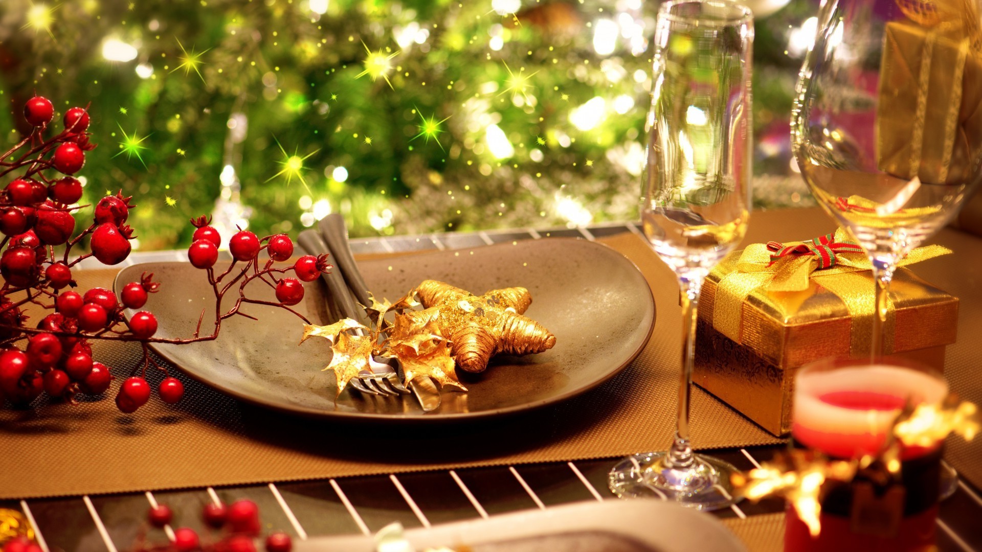 Decoraciones de Navidad en el fondo de reflejos brillantes