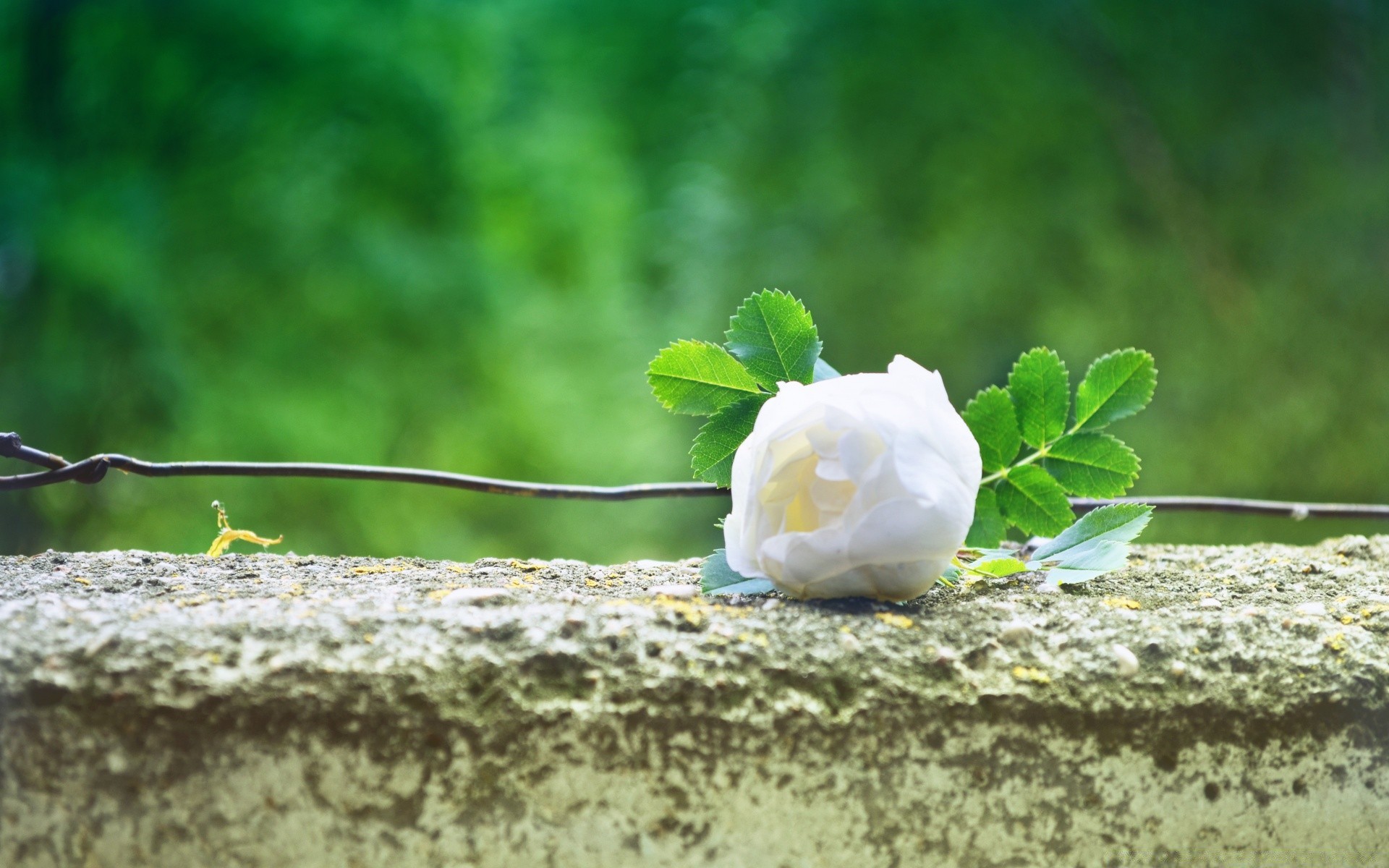 Rosa blanca. Hojas verdes