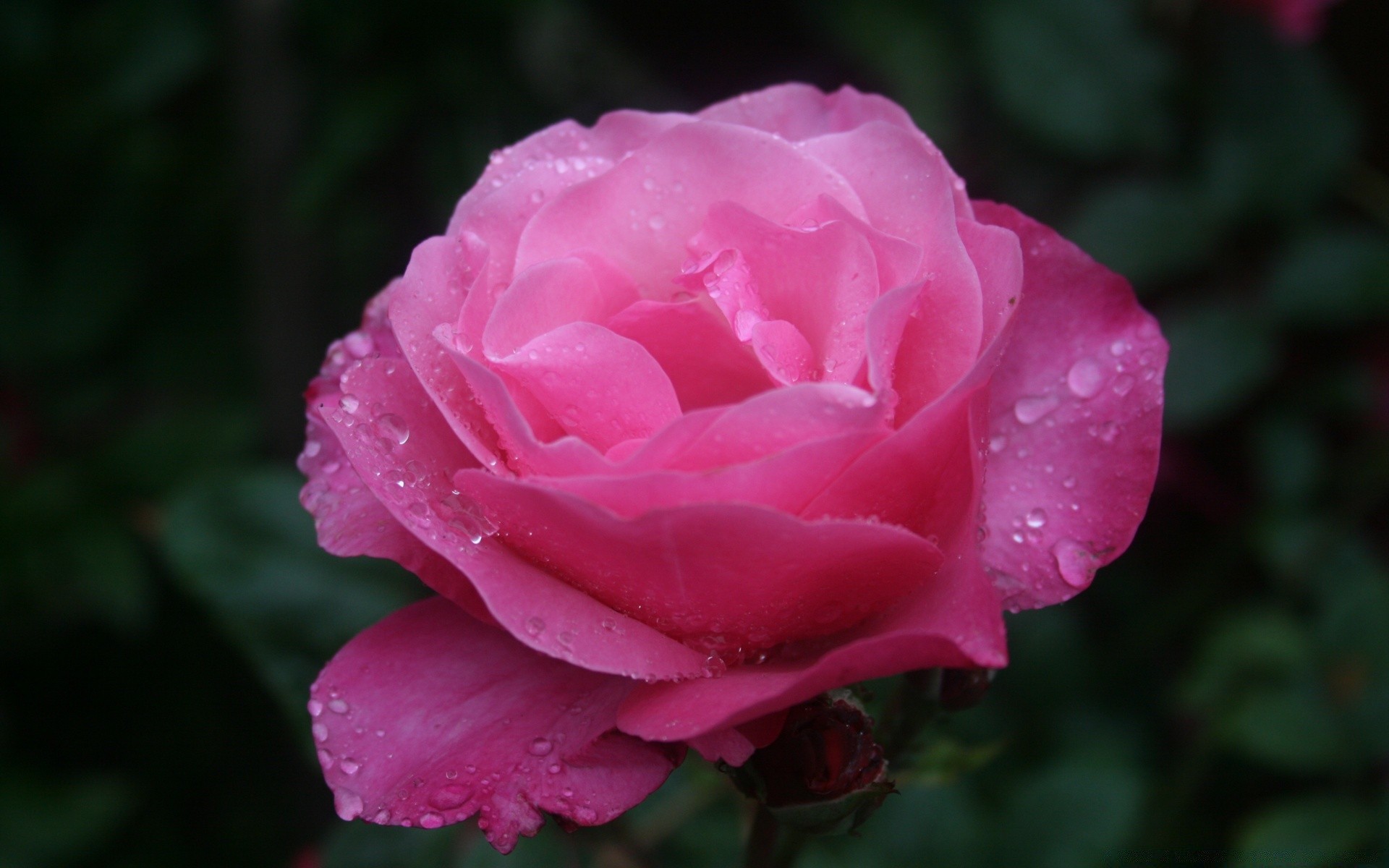 Rocío sobre un capullo de rosa sobre un fondo negro
