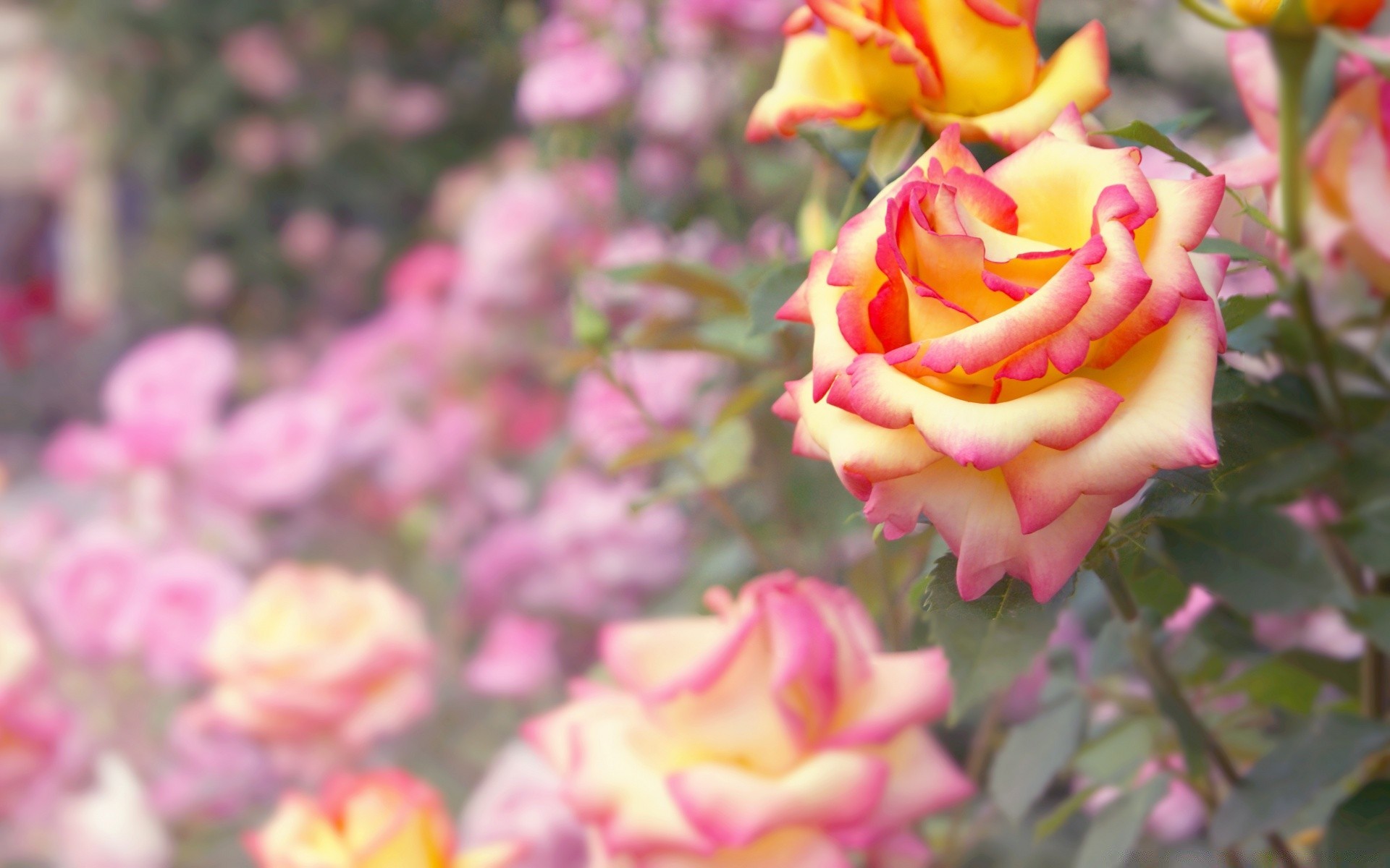 ROSA FLORECE EN LA MAÑANA DE VERANO