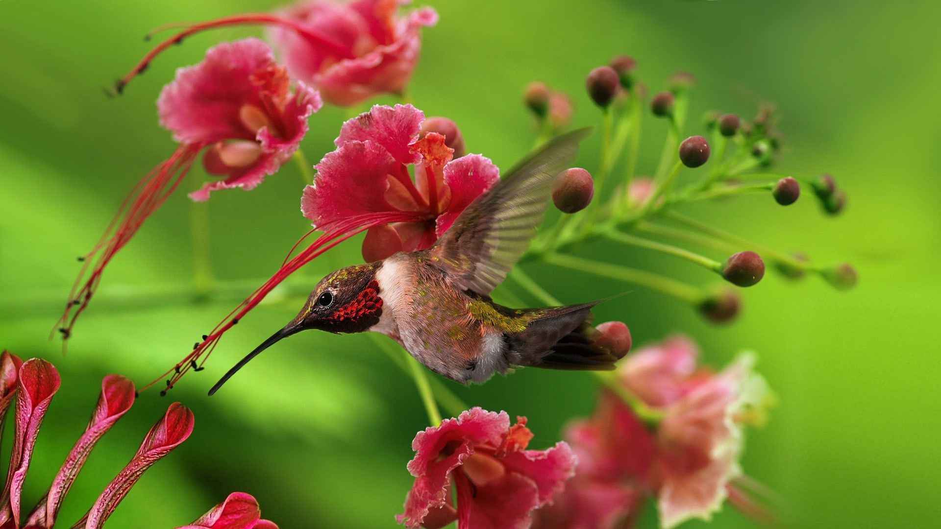 Un pájaro se sienta en una flor