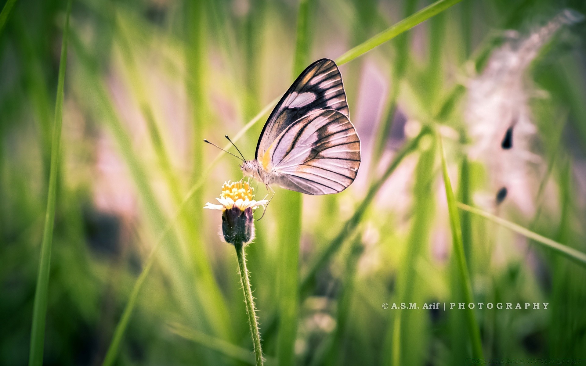 Mariposa rosa en la flor. Mariposa en la hierba. Verano