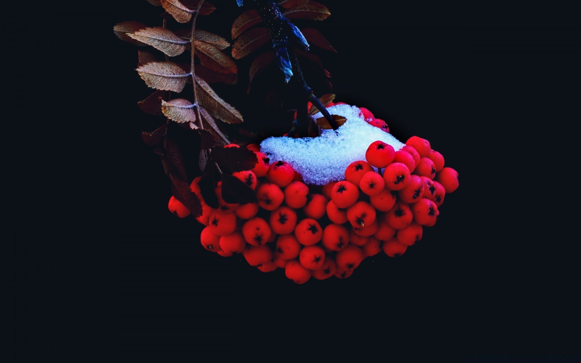 Un montón de ceniza de montaña en la nieve blanca