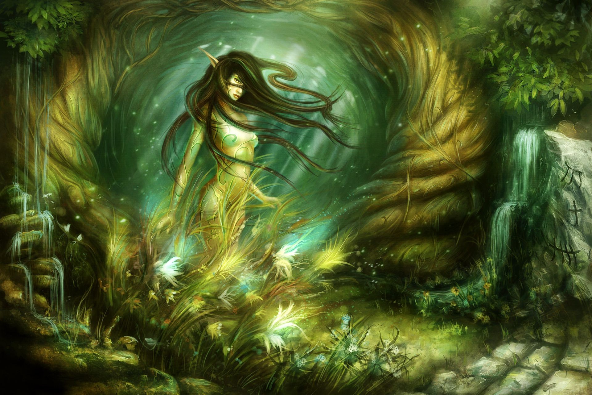 Elf junto al agua en un fondo verde