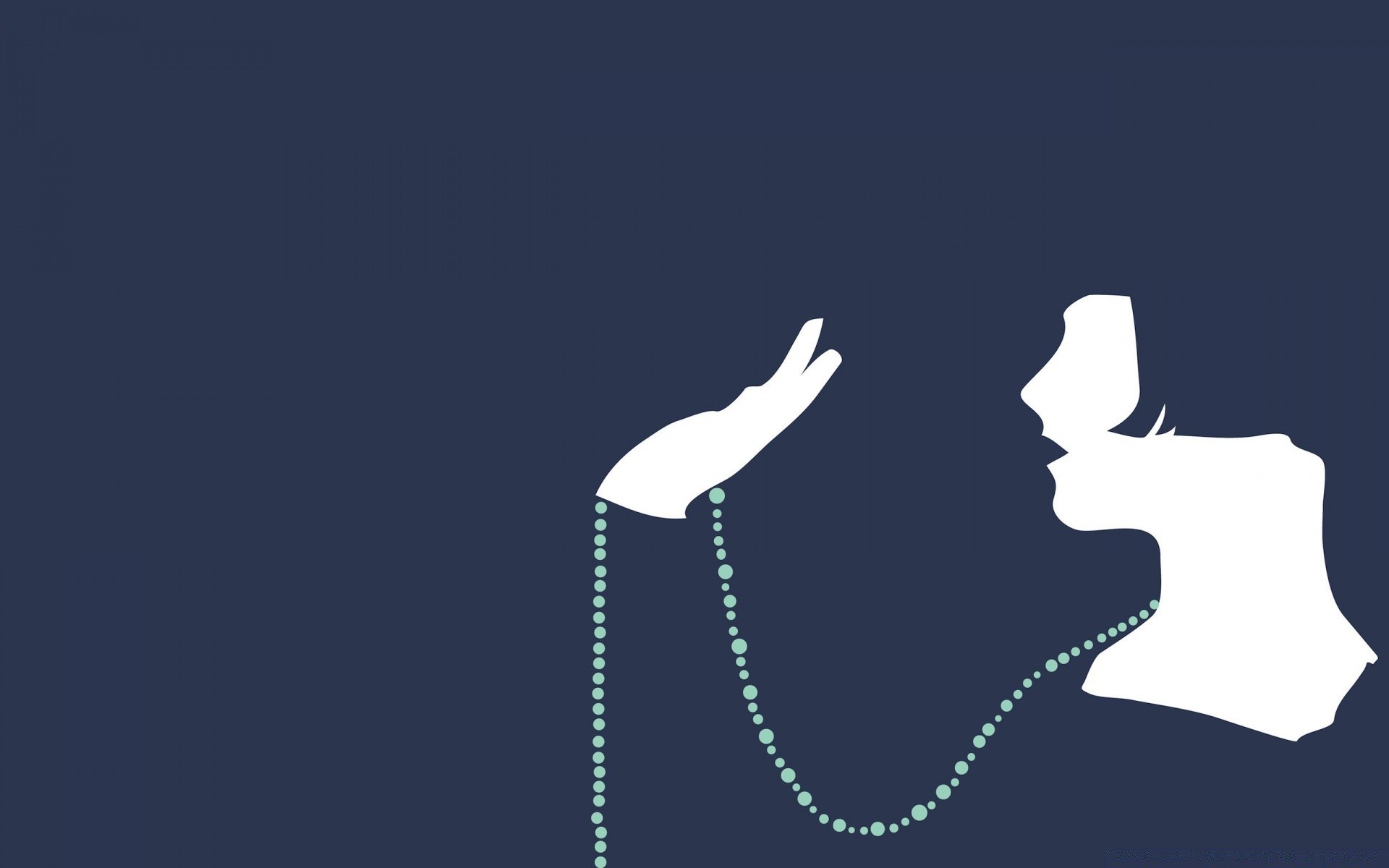 Ilustración de la silueta de una mujer con un cuadrado en cuentas sobre un fondo azul marino