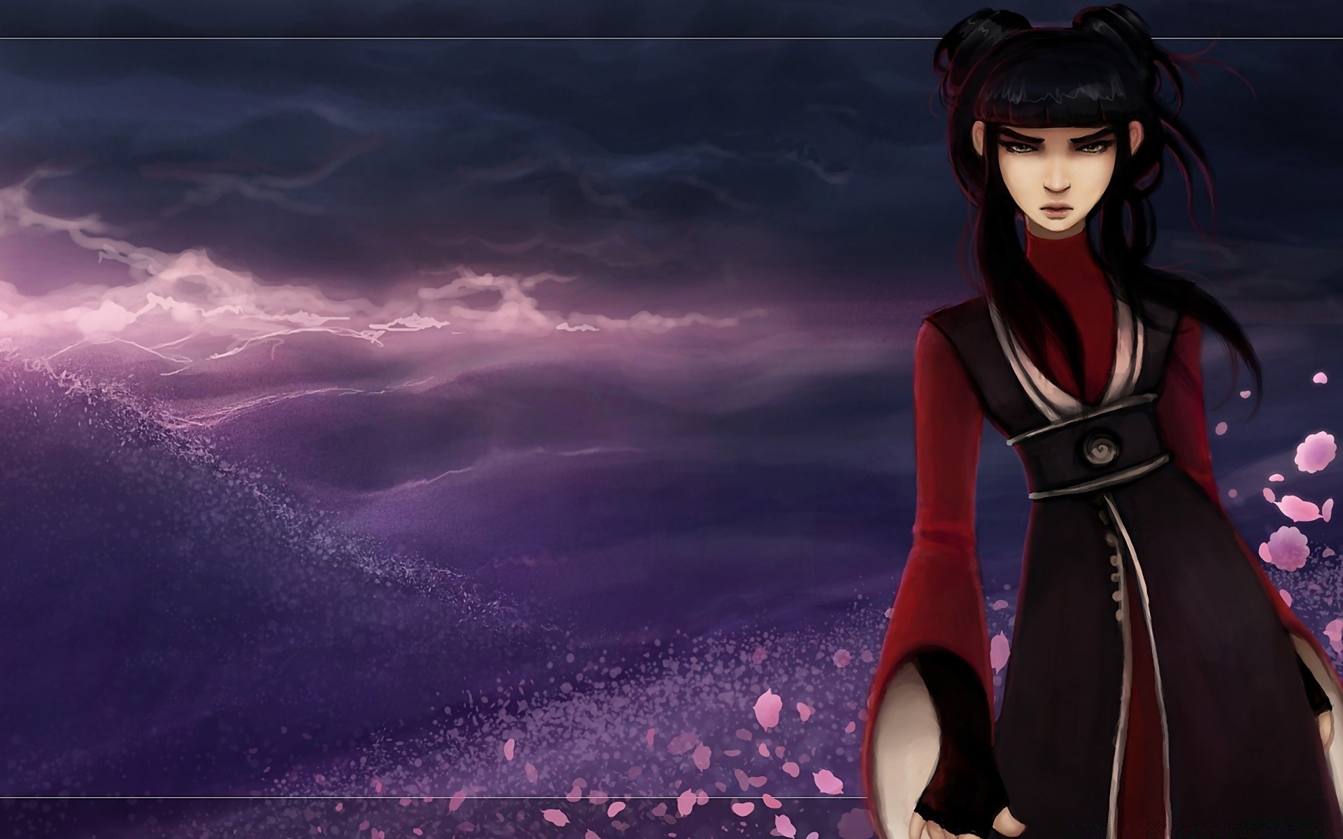 Ilustración de una chica de anime en círculos de fondoIlustración de una chica de anime en círculos de fondo