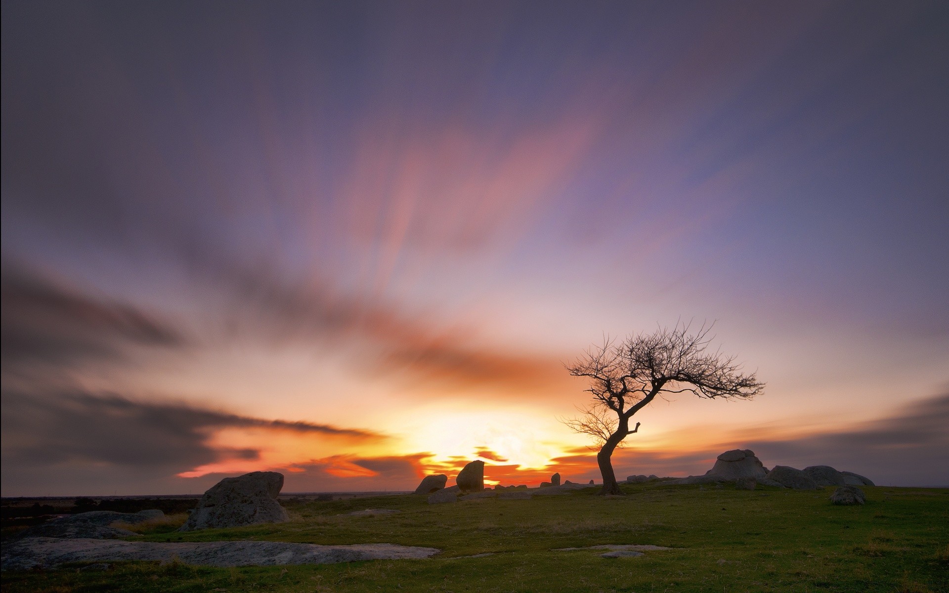 Puesta de sol en el fondo de un cielo naranja ardiente