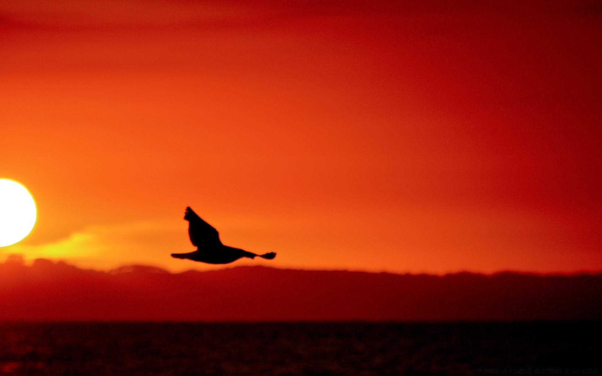 Cuatro árboles en el fondo de una hermosa puesta de sol