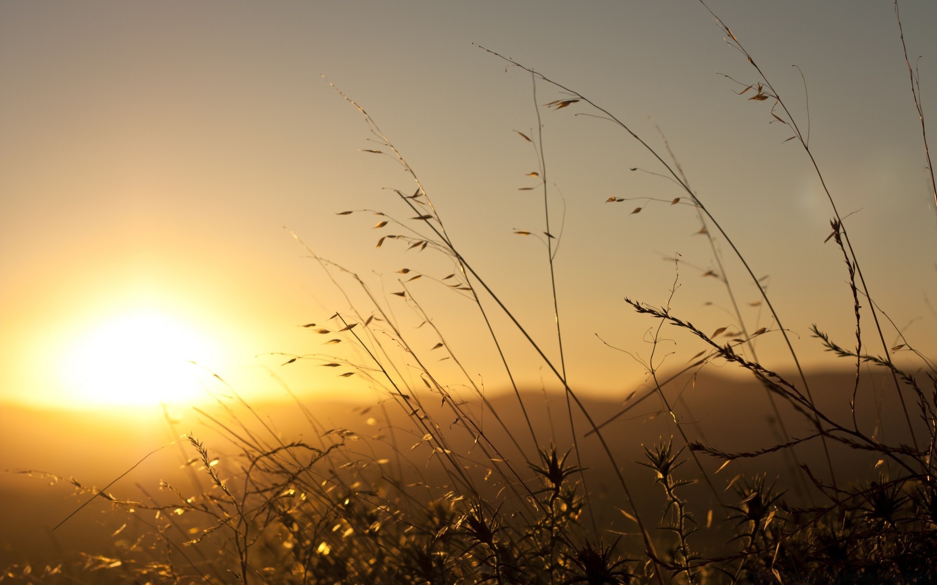 Silueta de las montañas en el fondo de la puesta de sol