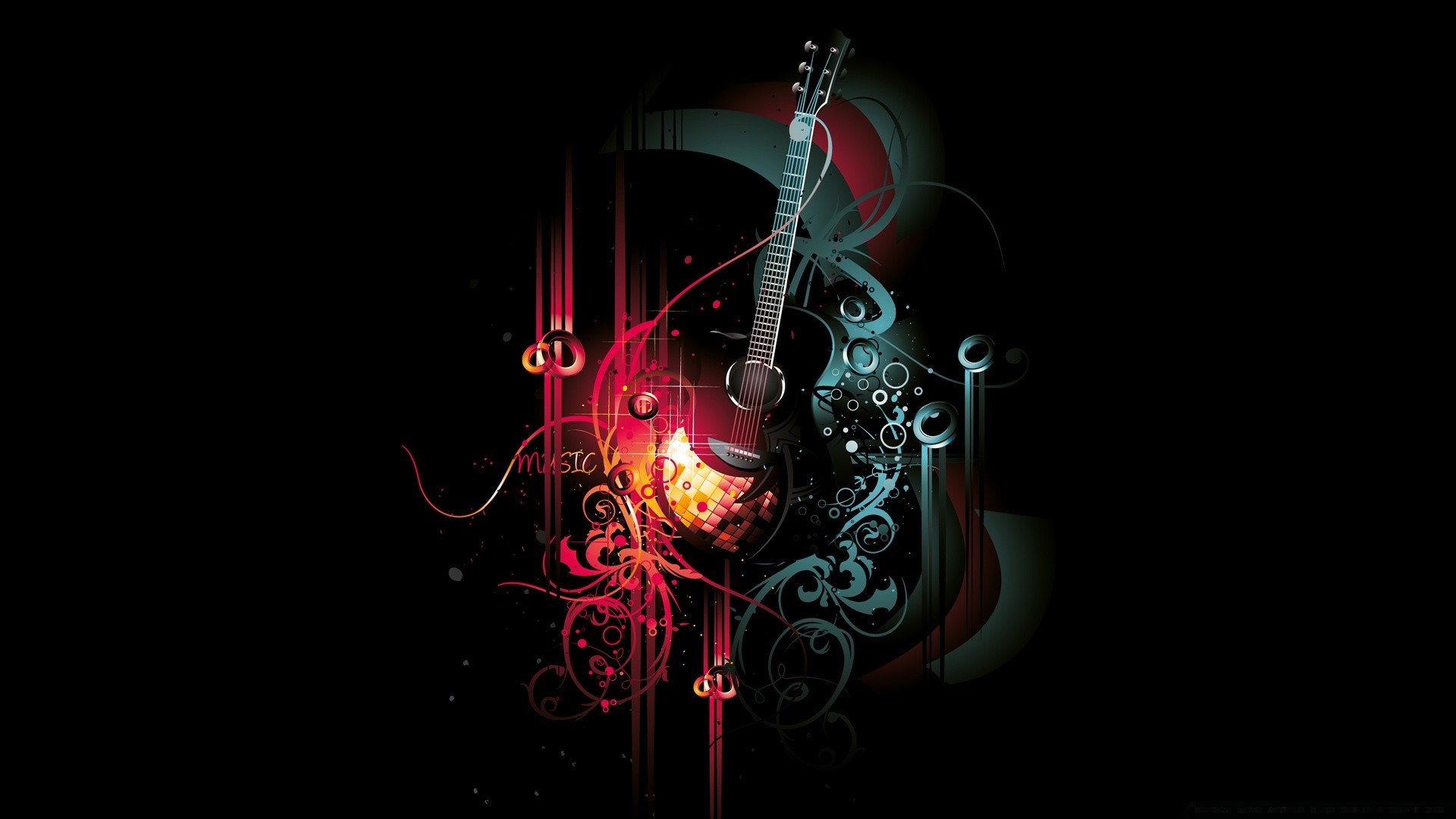 Guitarra mágica sobre fondo negro