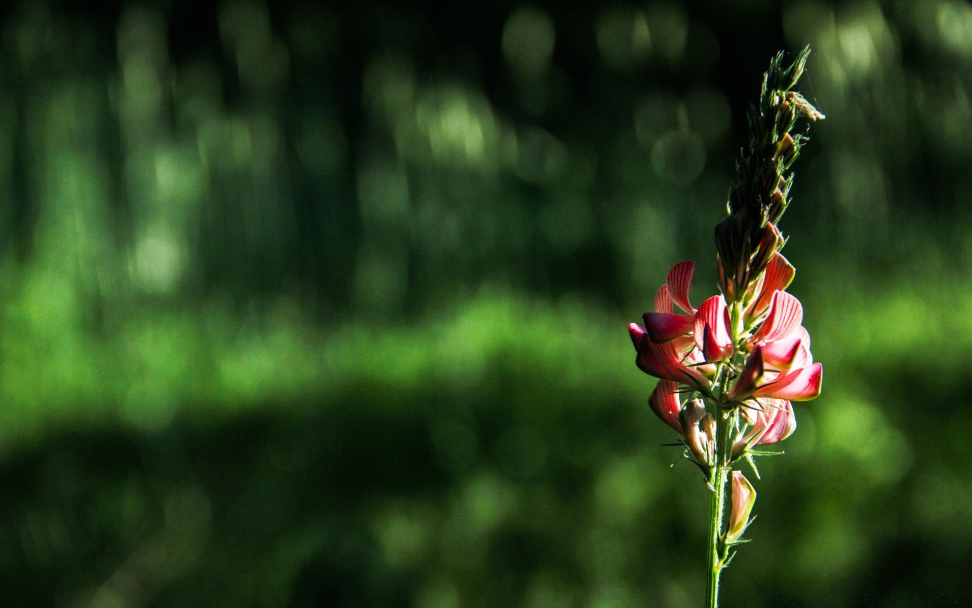 Misteriosa flor roja sobre fondo verde