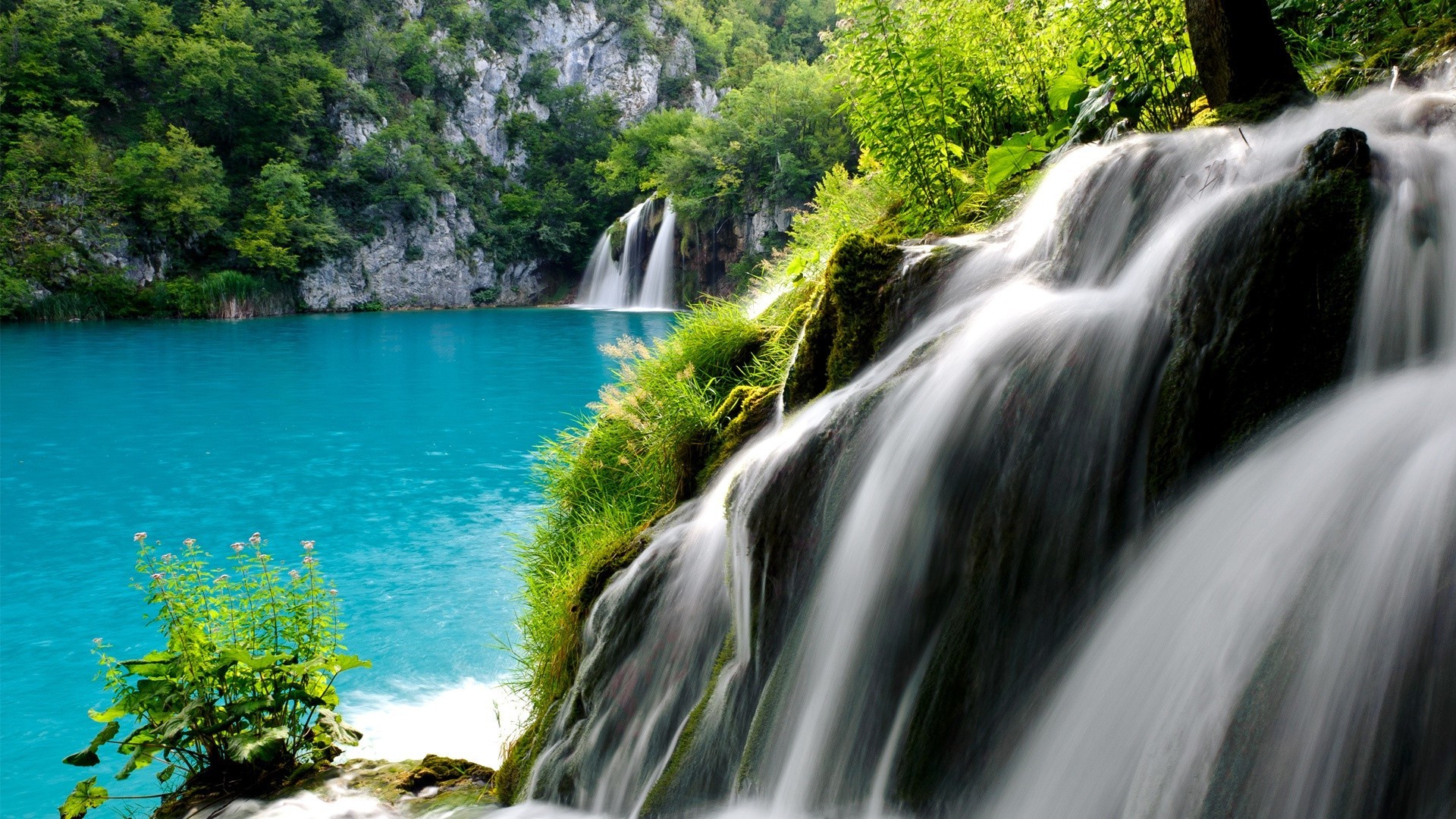 Fantástico fondo de pantalla con estanque. Ciervos en la naturaleza