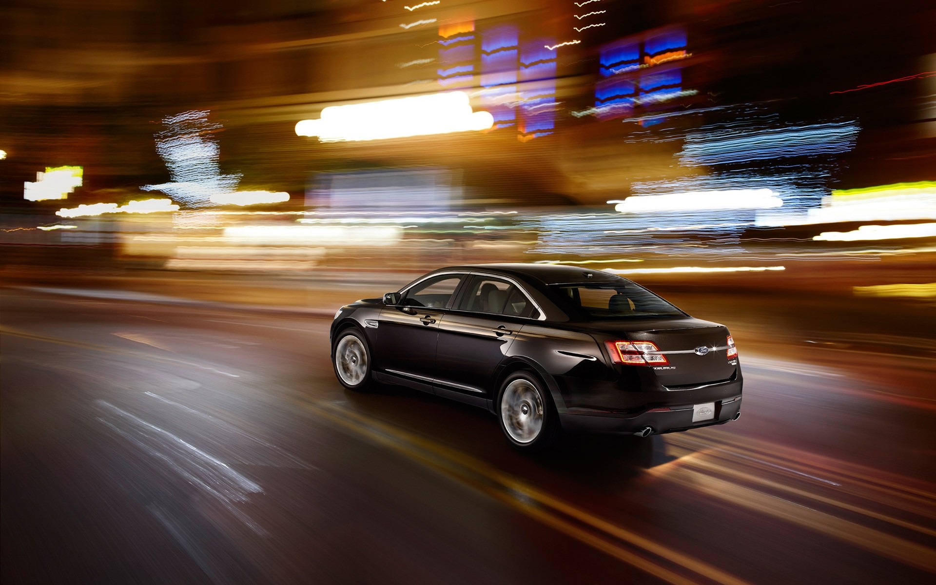 Coche negro corre en las luces