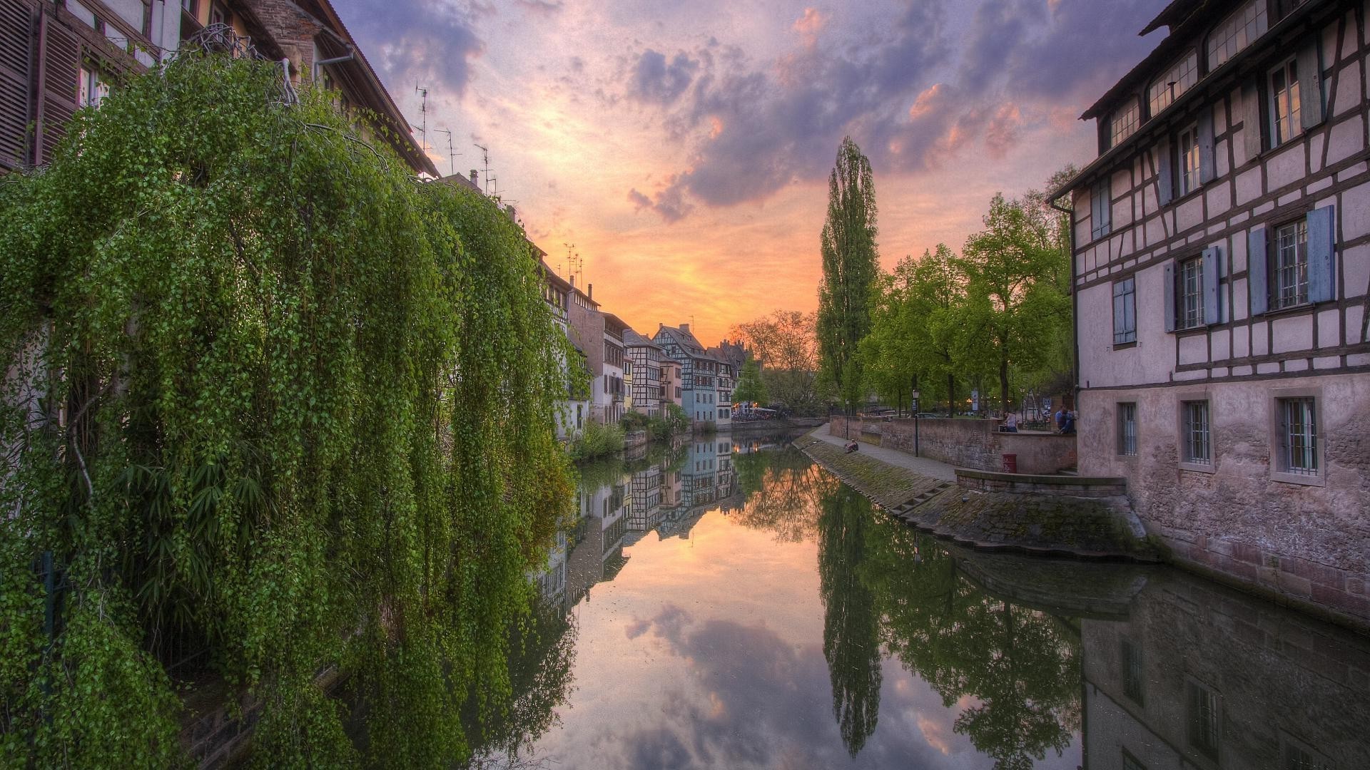 Arquitectura urbana en el crepúsculo al atardecer mientras viaja