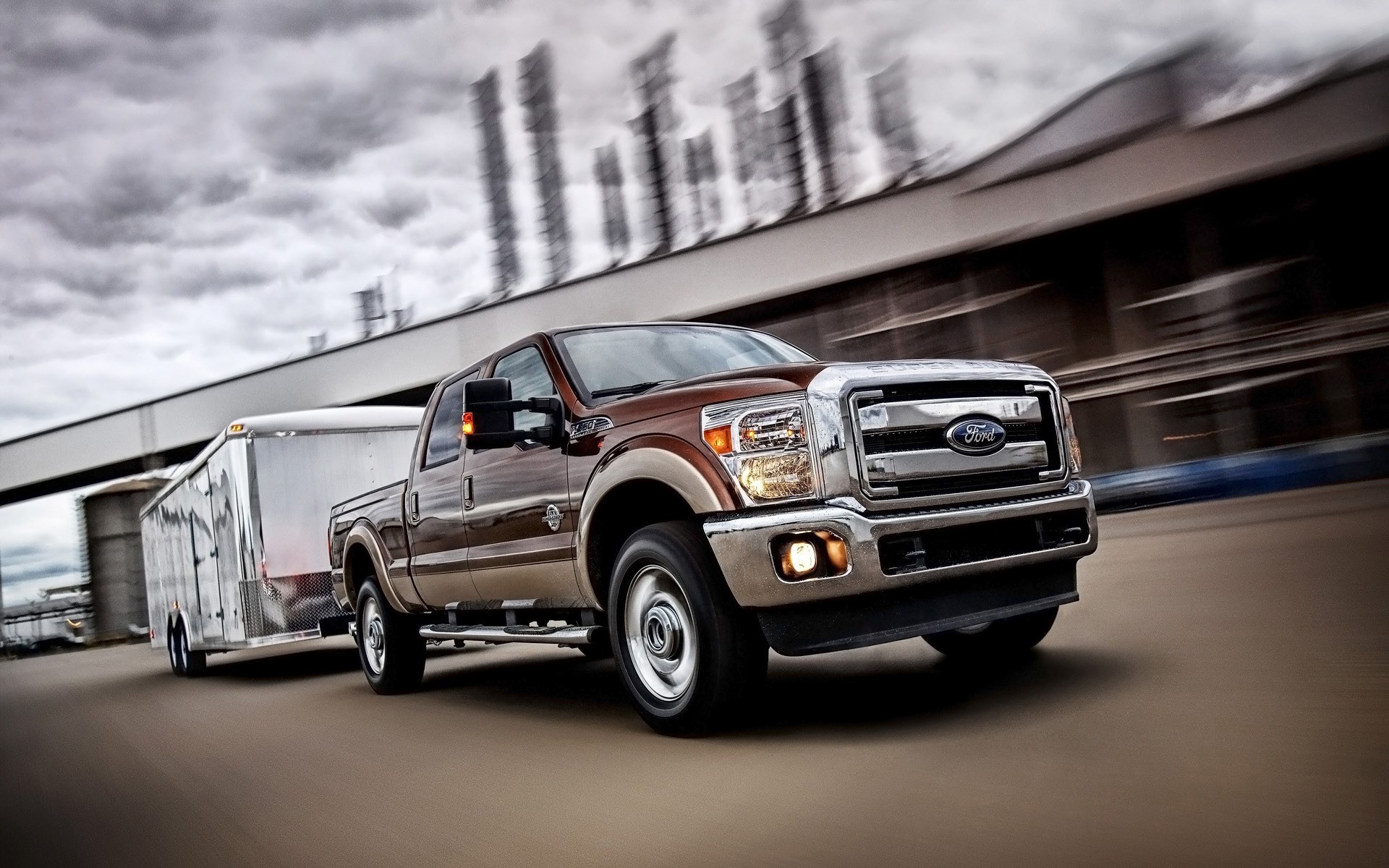 Ford SUV blanco entre el bosque en el fondo de las montañas